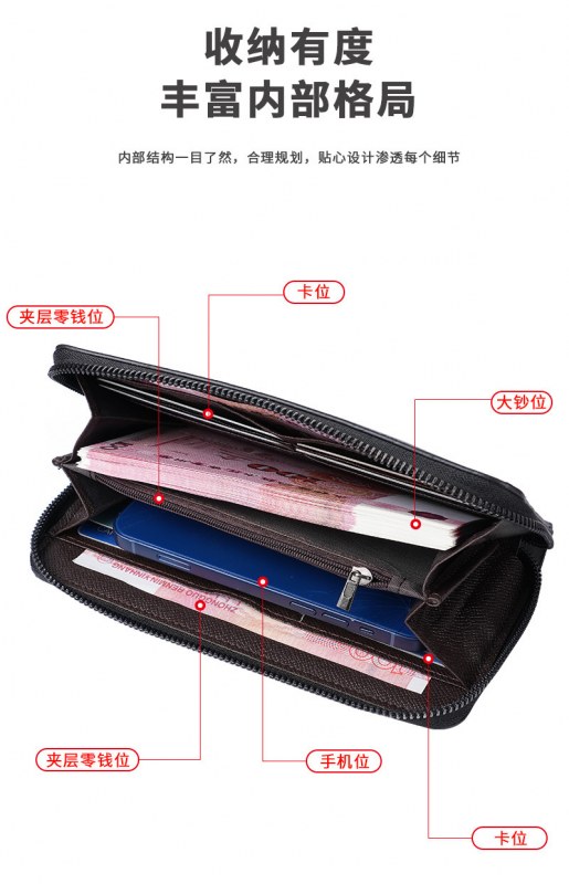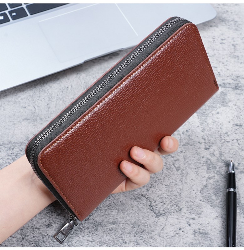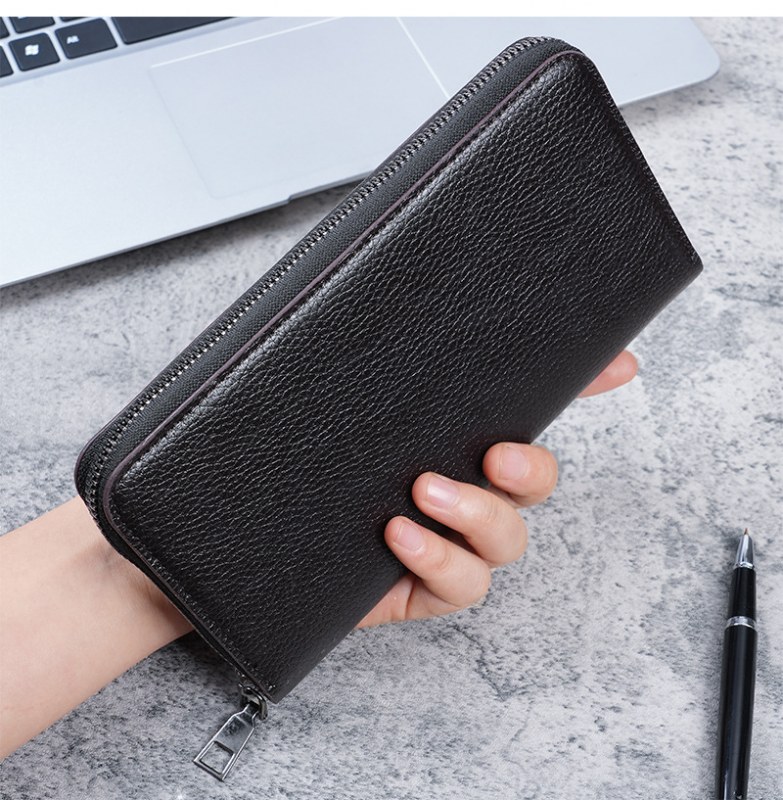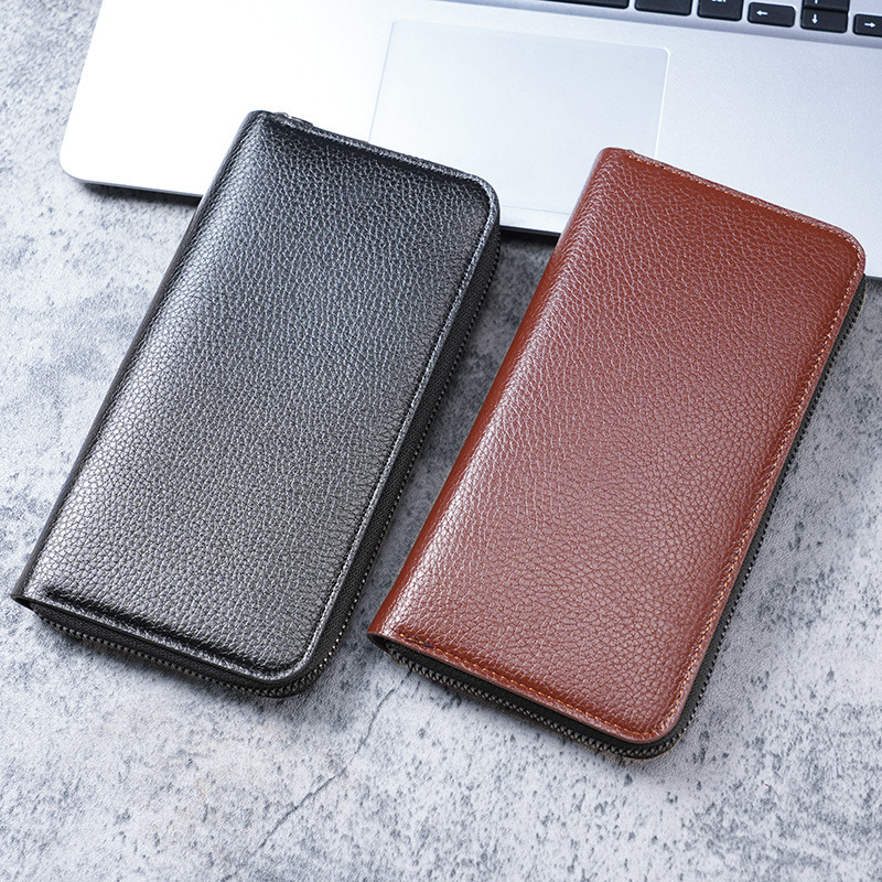 • ロングメンズジッパーウォレット大容量レザーウォレットクラッチバッグ携帯電話バッグカジュアル名刺スロットマネー