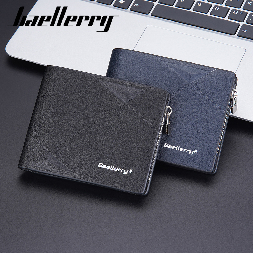 • 新しいメンズショートウォレット横型ビジネスマルチカードスロットジッパー小銭入れ男性用