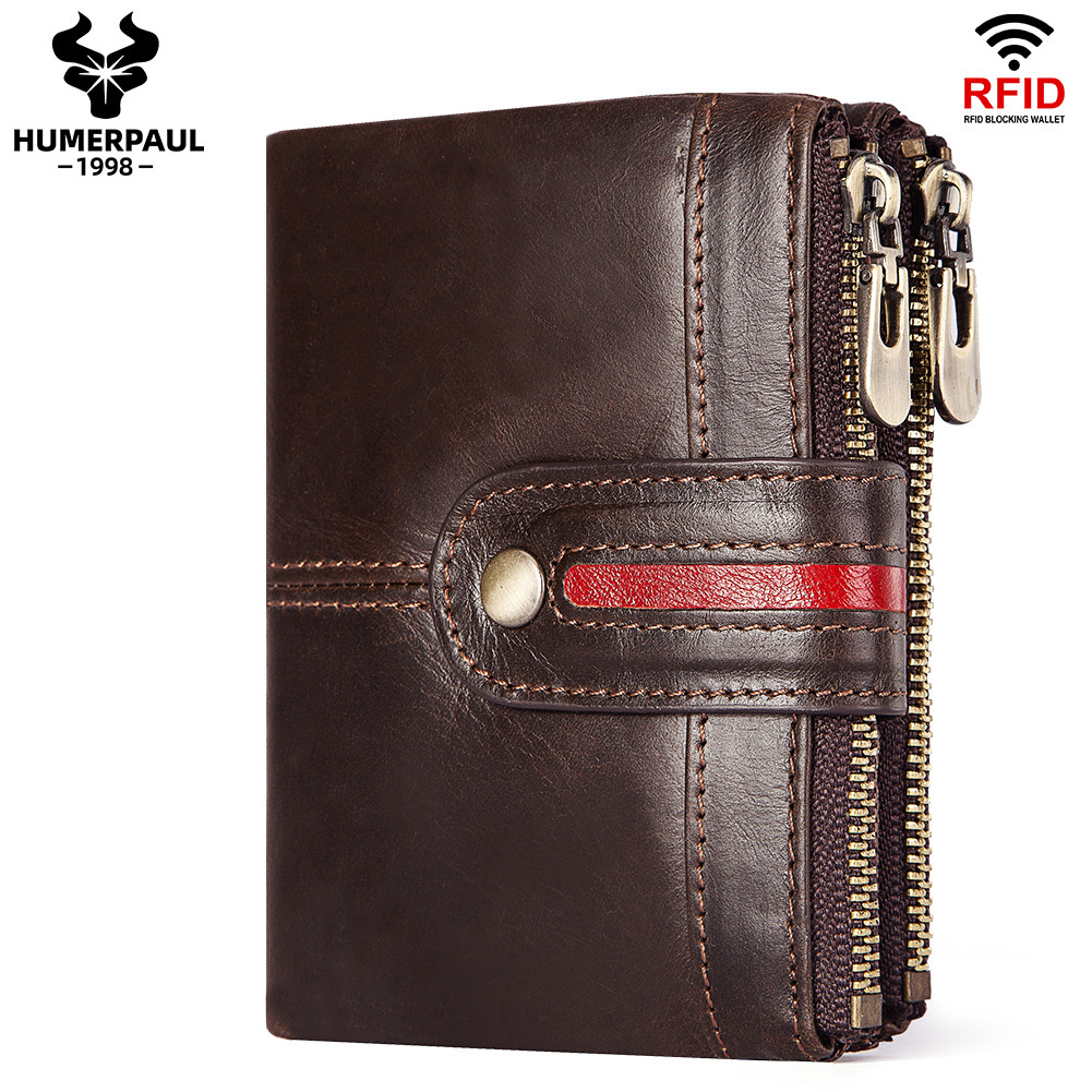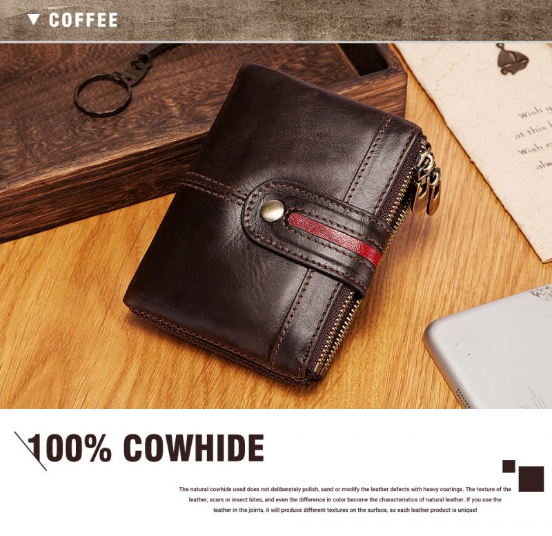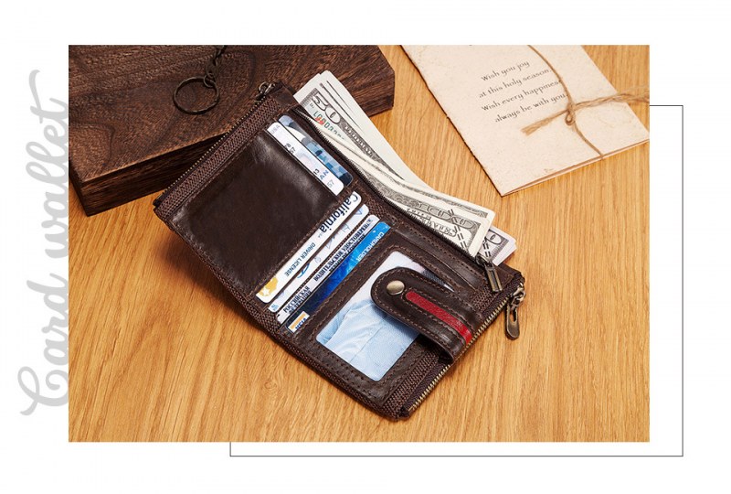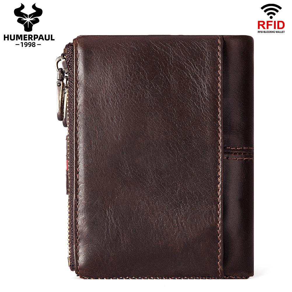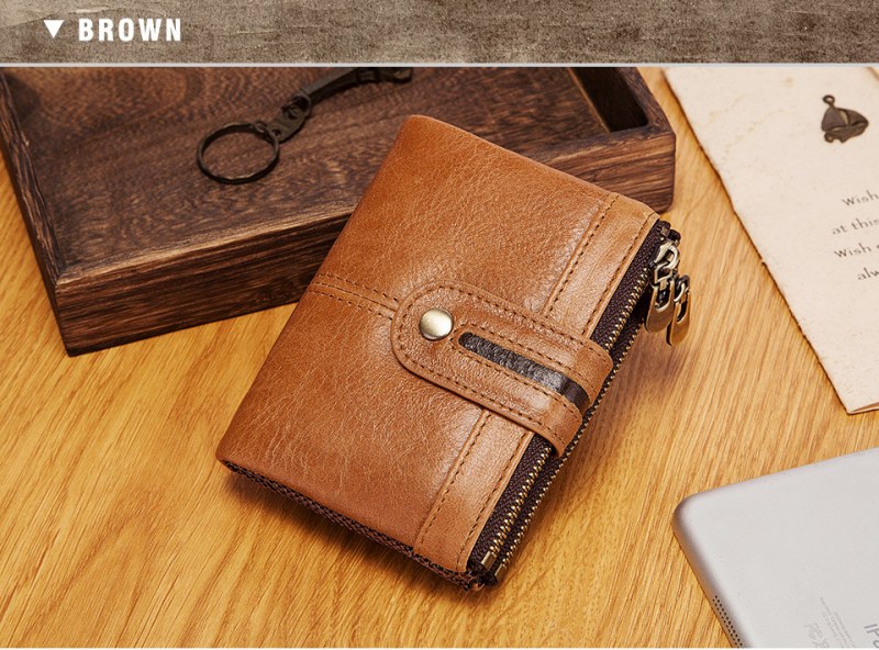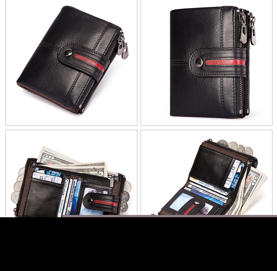 • メンズショート本革ジッパー小銭入れレトロ牛革RFID盗難防止ブラシショートウォレット