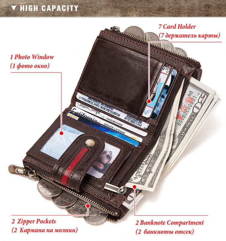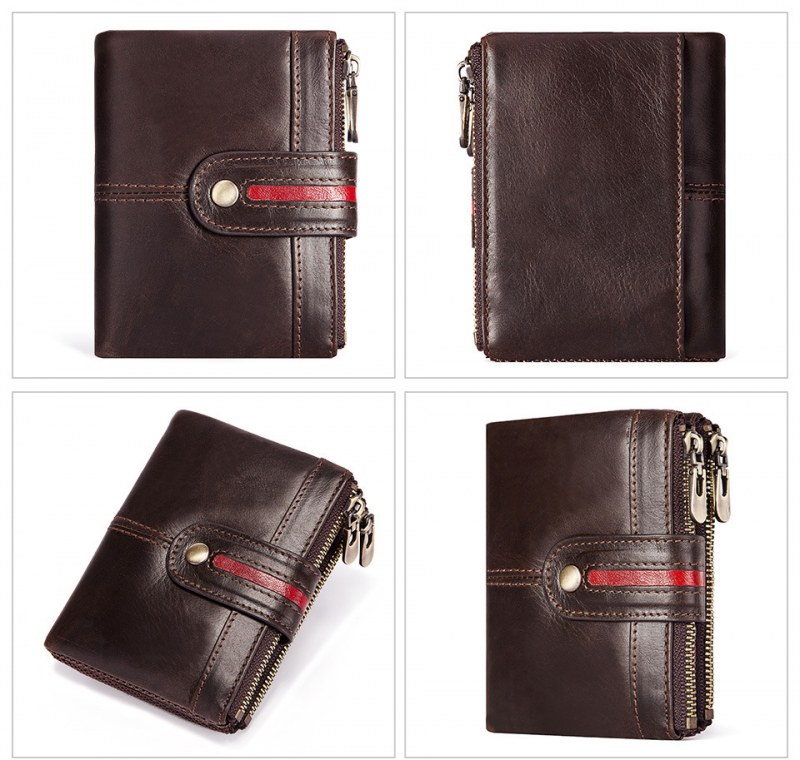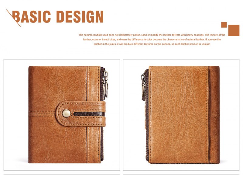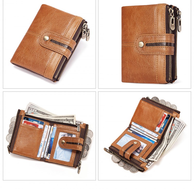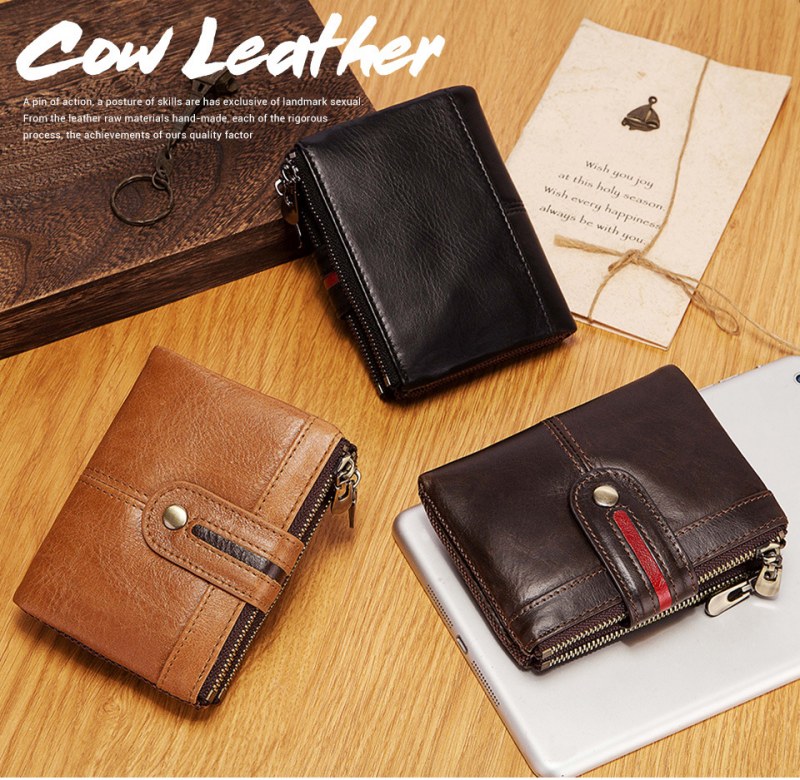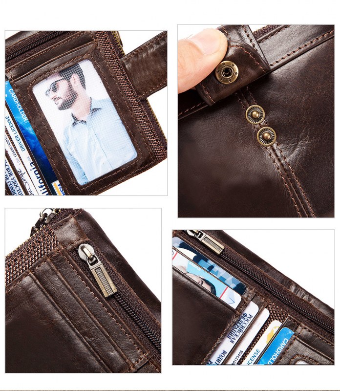 • メンズショート本革ジッパー小銭入れレトロ牛革RFID盗難防止ブラシショートウォレット
