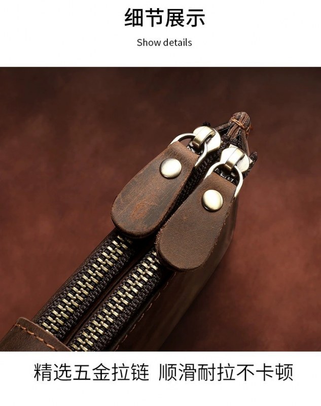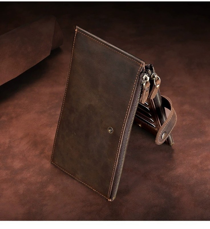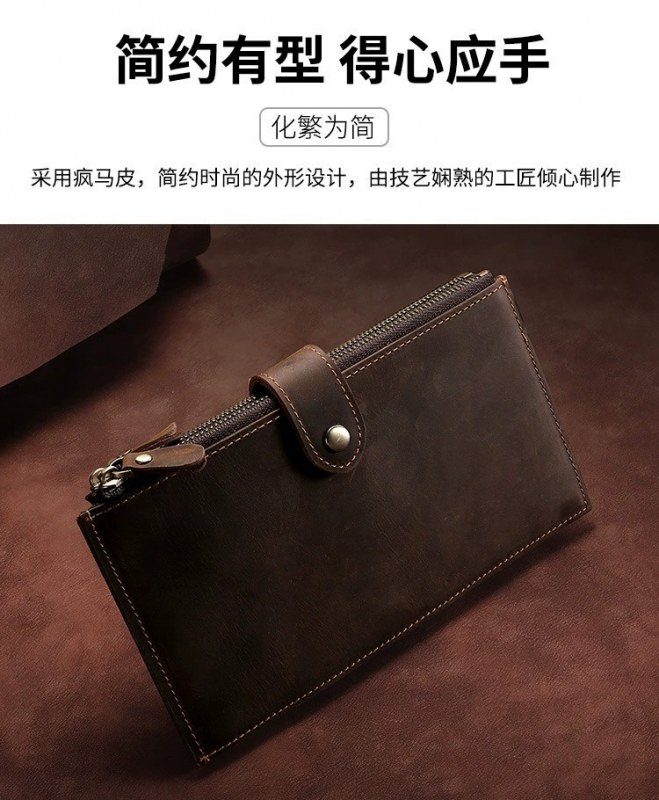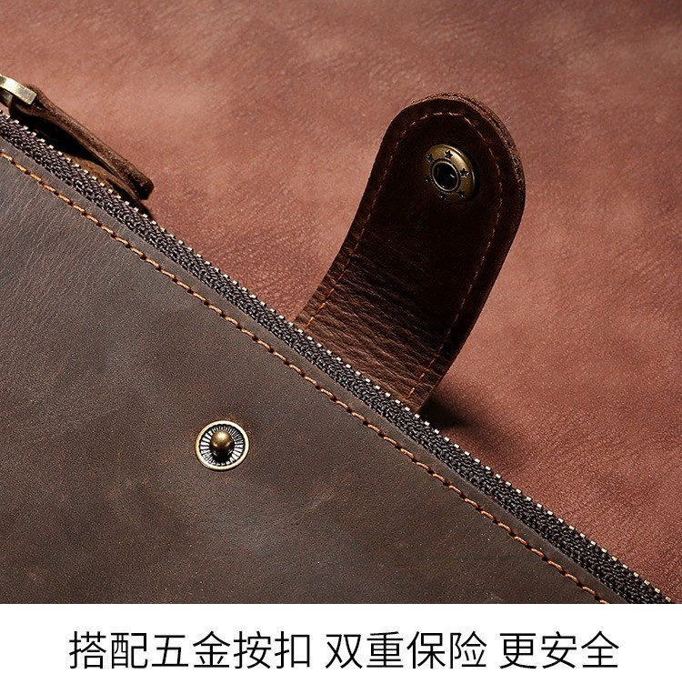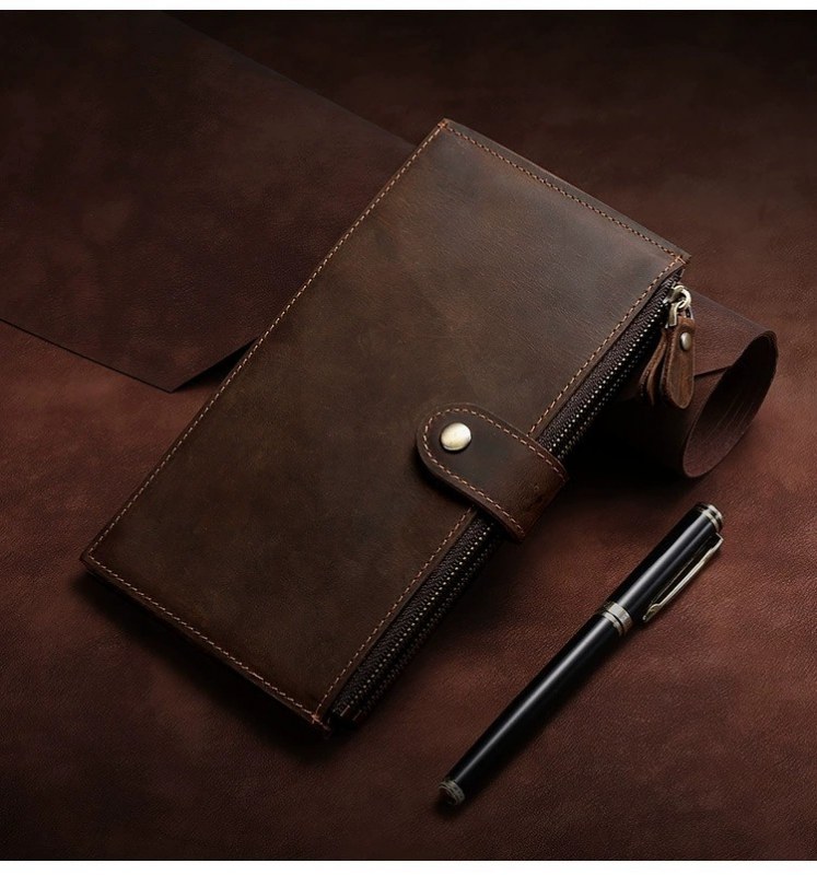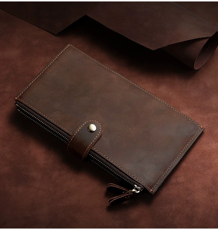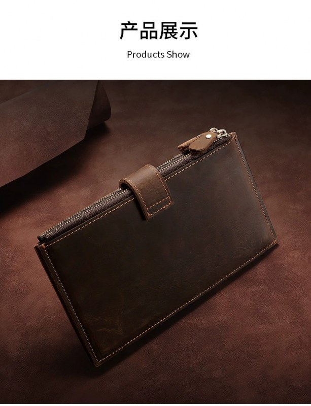 • 複数のカードスロットを備えた本革メンズ長財布、RFID消磁防止、携帯電話を収納できる盗難防止ブラシジッパーウォレット