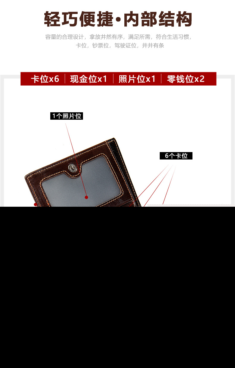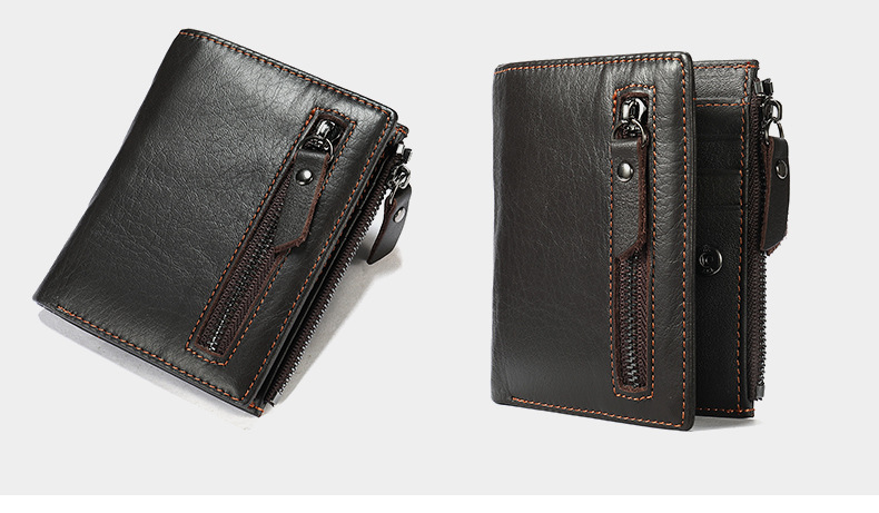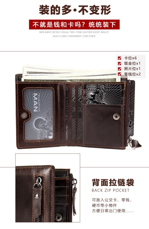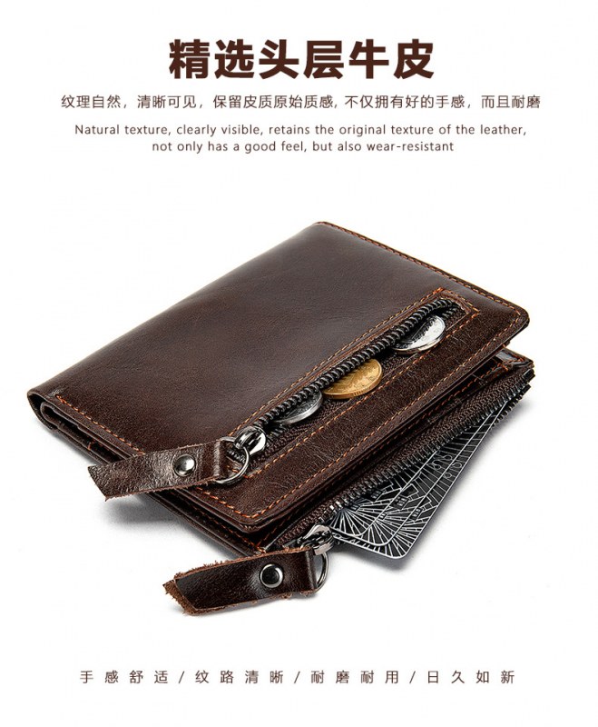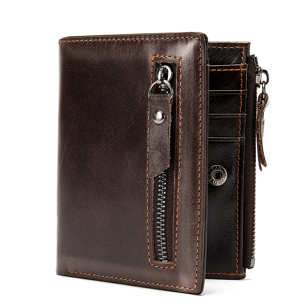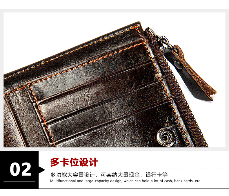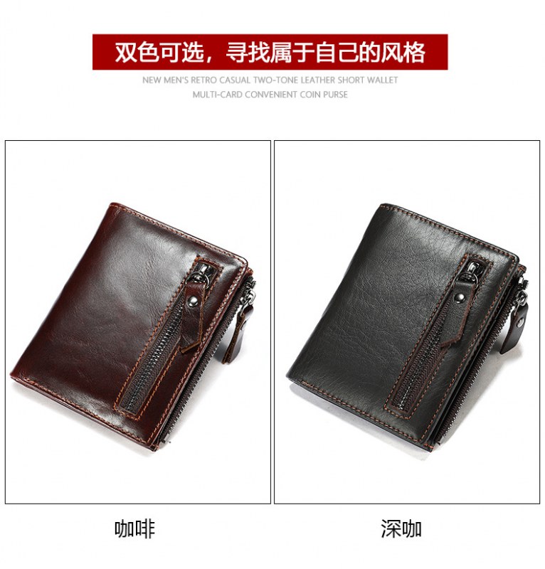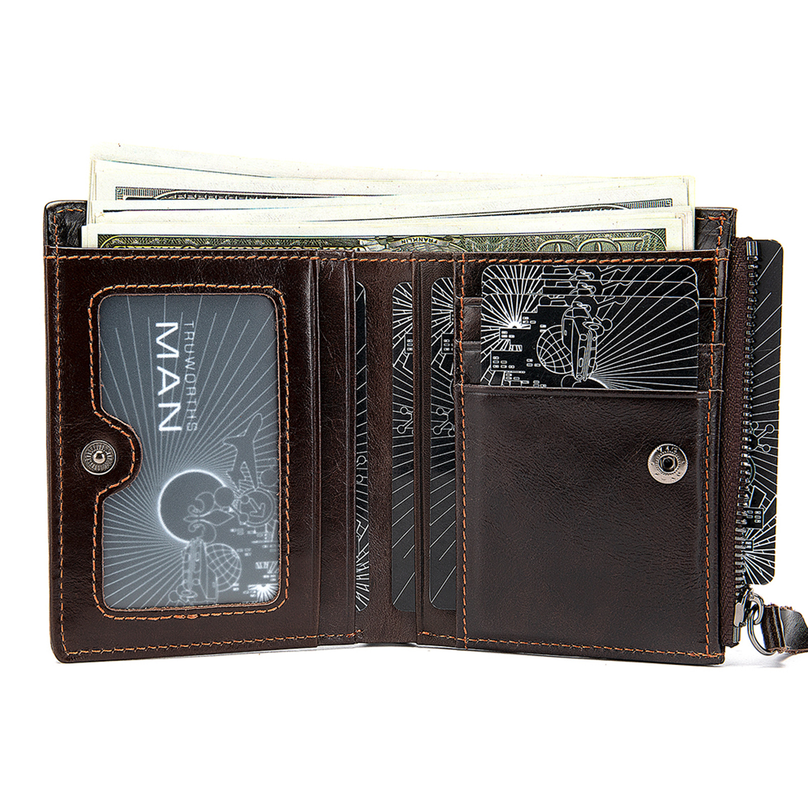 • メンズオイルワックスレザーウォレットrfid盗難防止カードホルダー複数のカードスロット付きレトロパーソナライズジッパー本革ドルホルダー