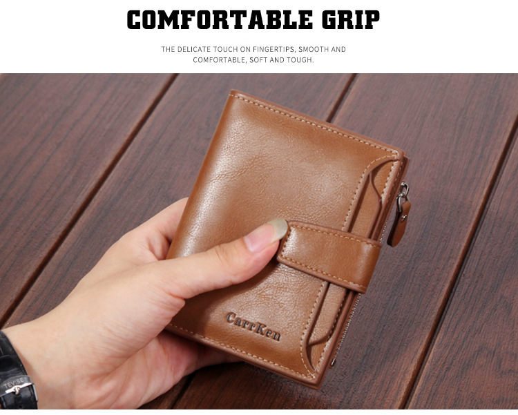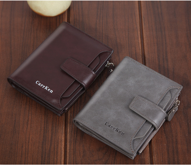 • メンズ財布 ショートウォレット バックル 大容量 ファスナー オイルワックスレザー ソフトレザー 小銭入れ