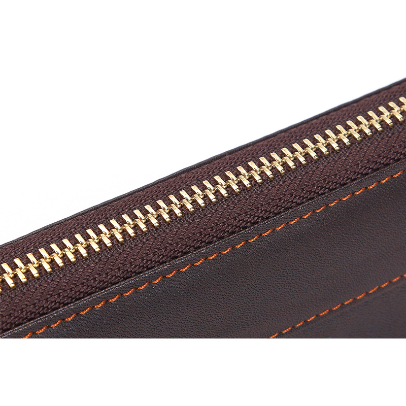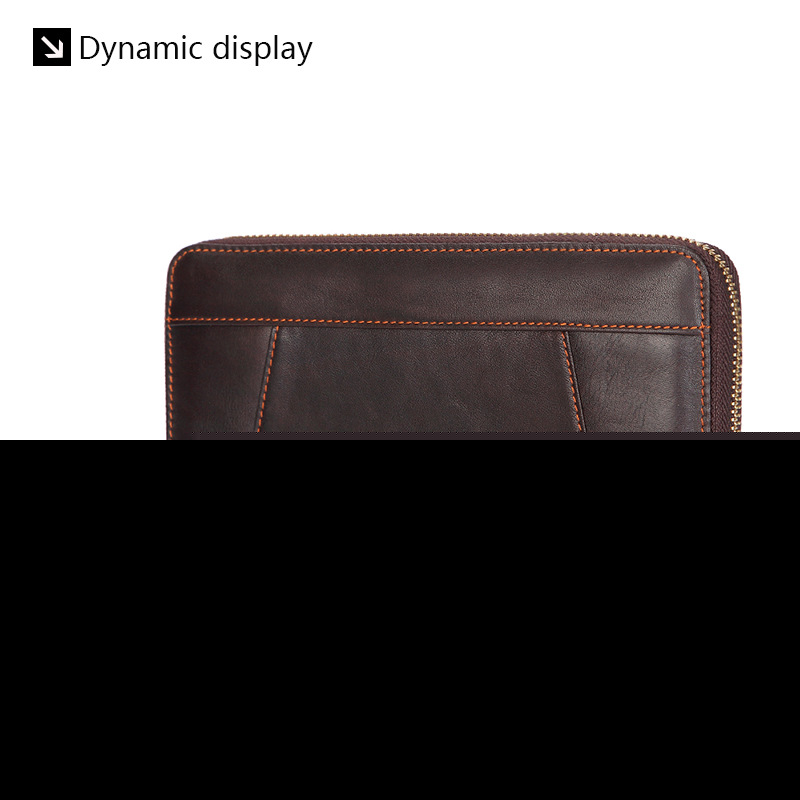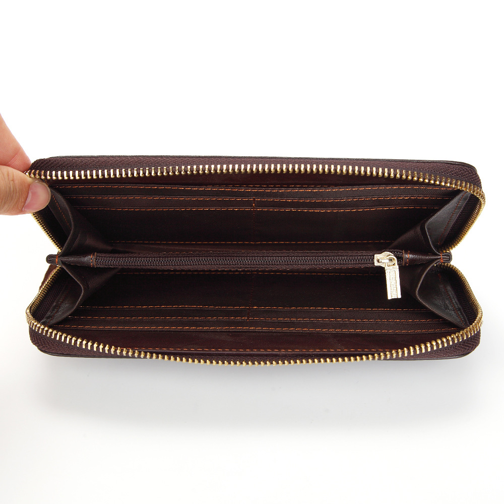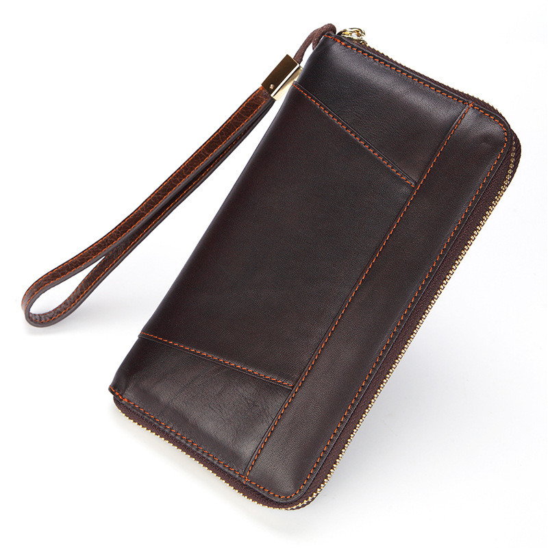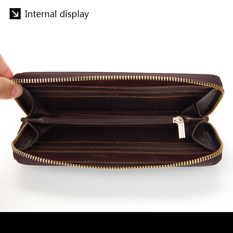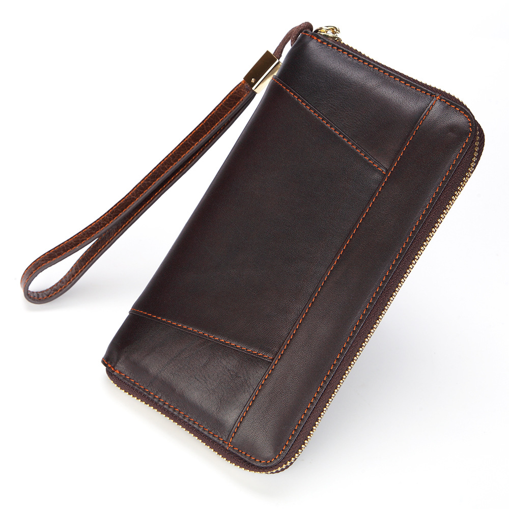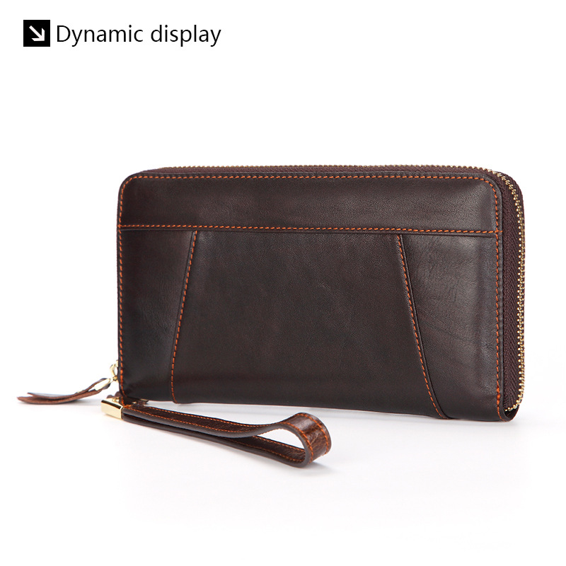 • オイルワックスレザーシングルプルバッグファーストレイヤー本革ロングジッパーバッグレトロウォレット