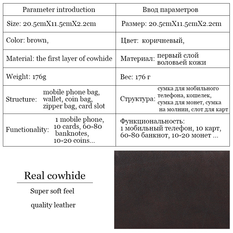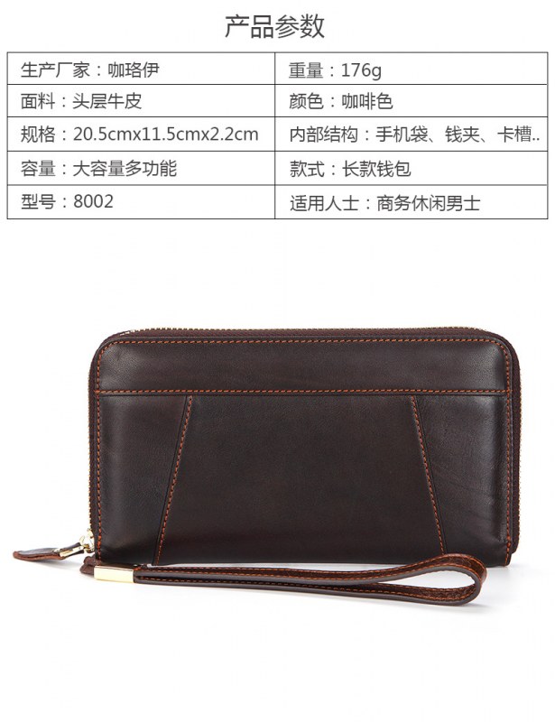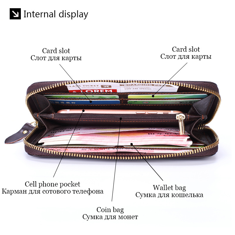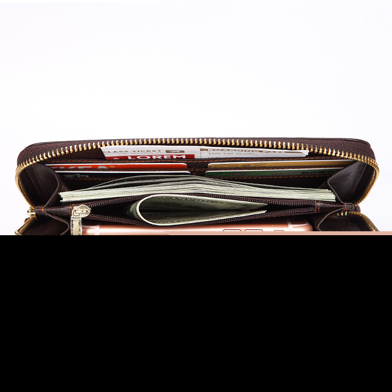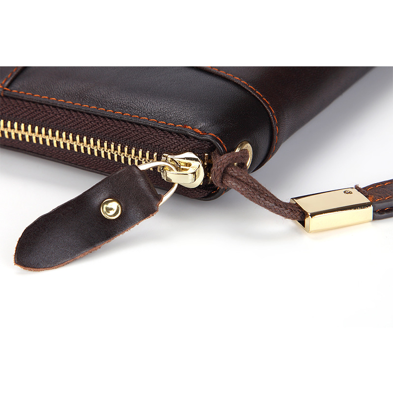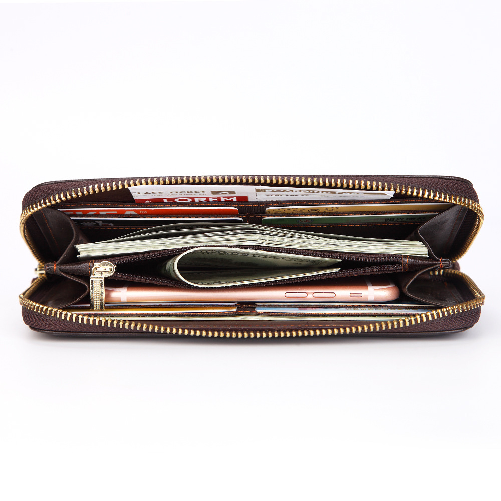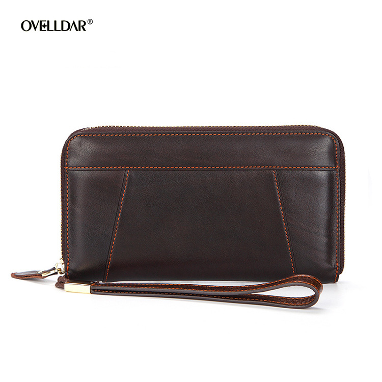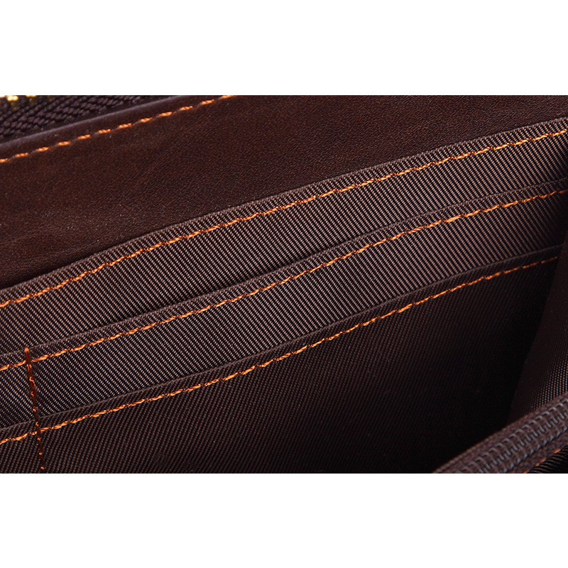 • オイルワックスレザーシングルプルバッグファーストレイヤー本革ロングジッパーバッグレトロウォレット