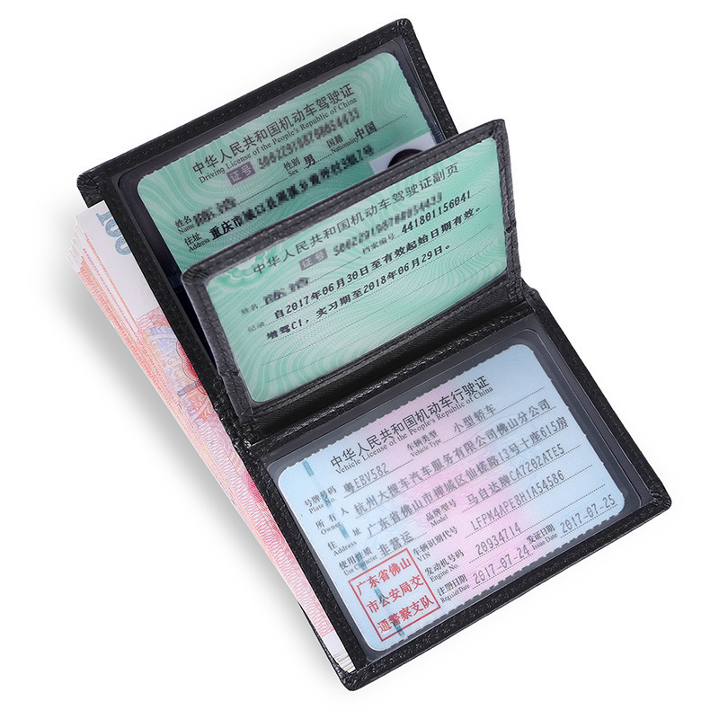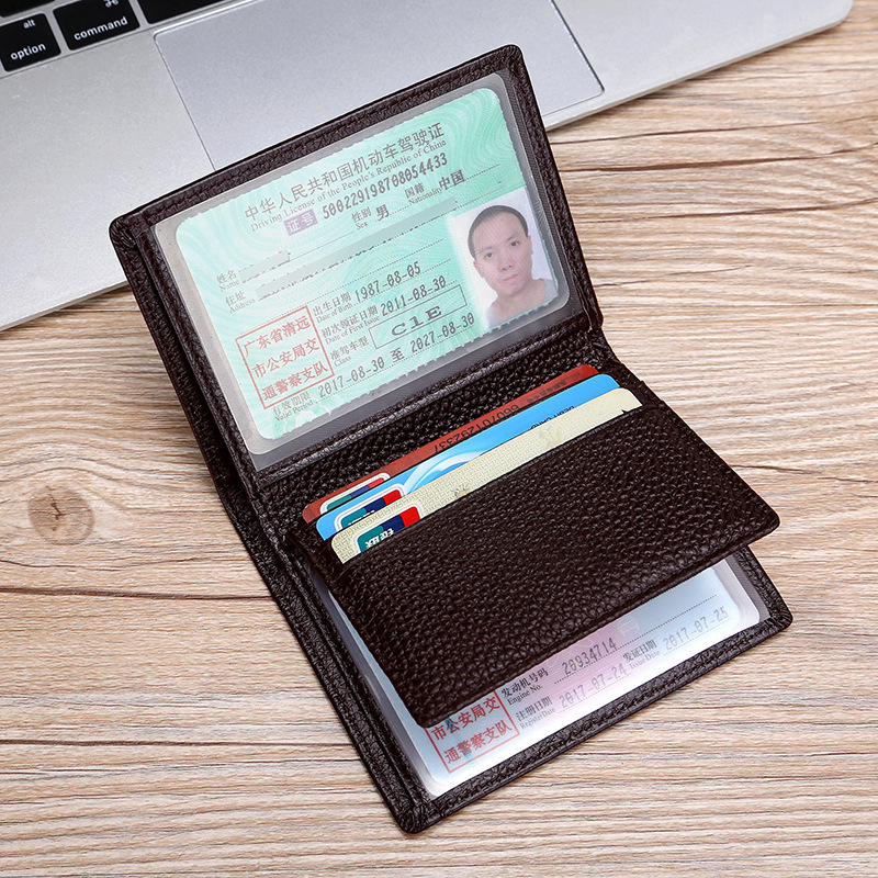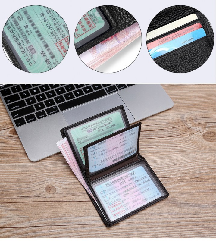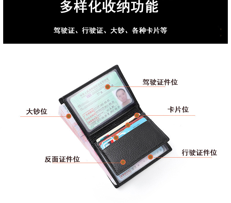 • 本革免許証ウォレット、縦型多機能免許証クリップ、牛革免許証カバー、オールインワンメンズ財布