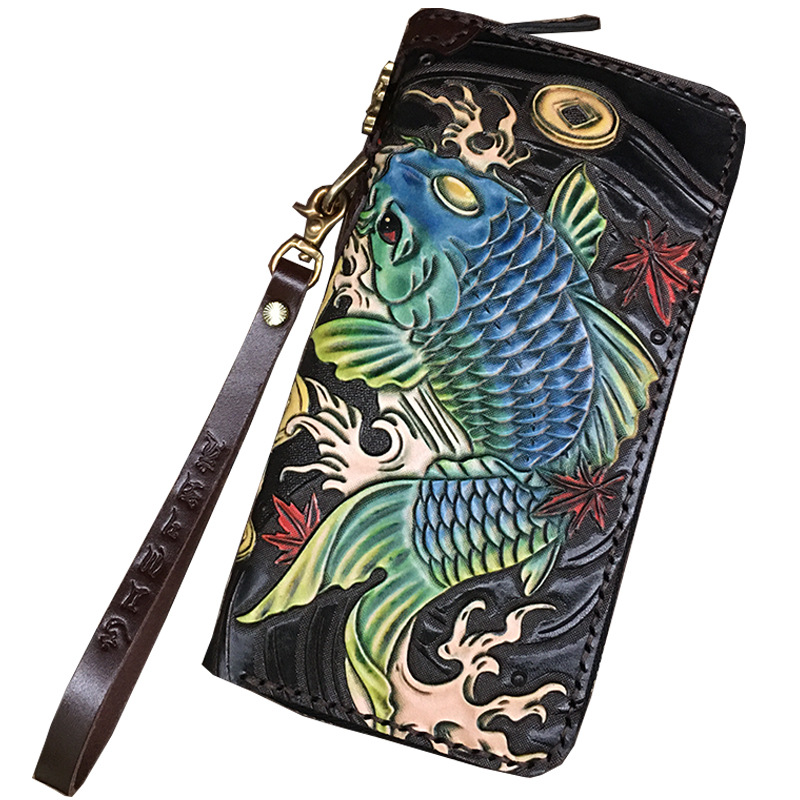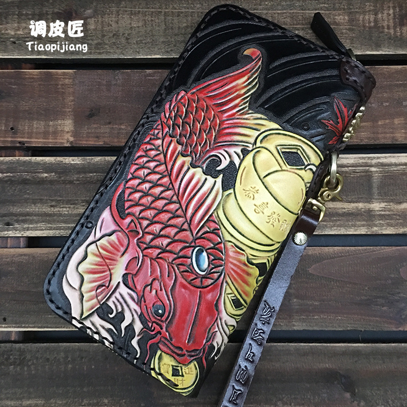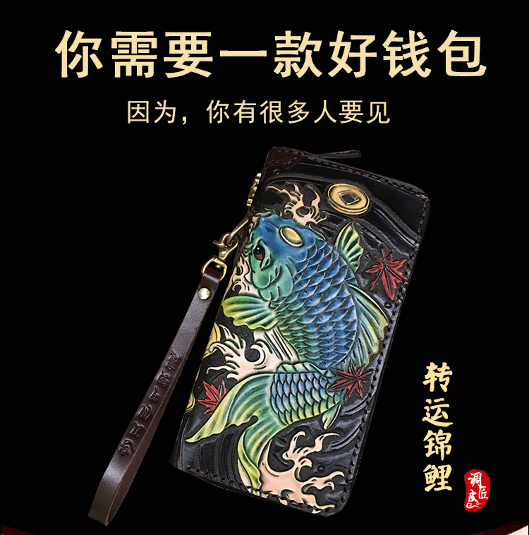 • 本革財布メンズ卸売ハンドメイドレザーバッグレディースレザーウォレット第一層牛革財布レザーカービングバッグ