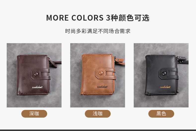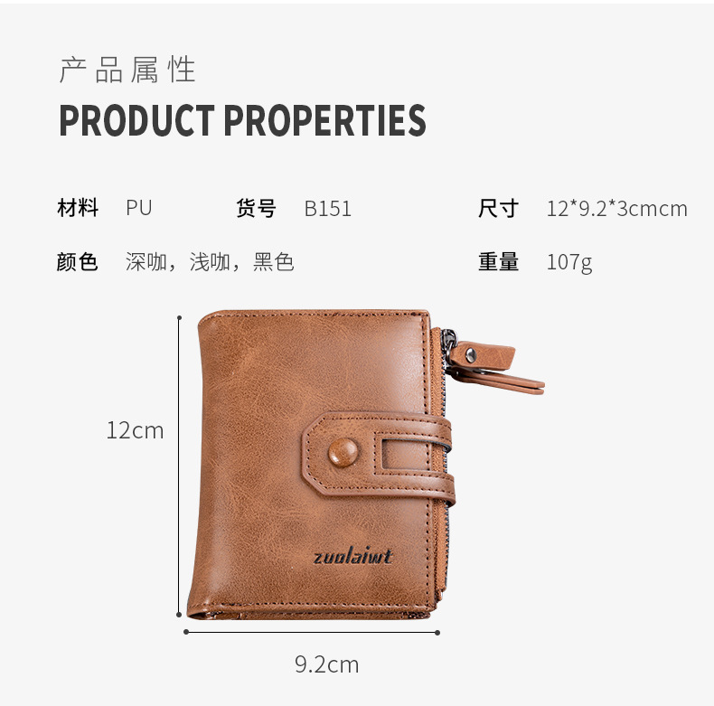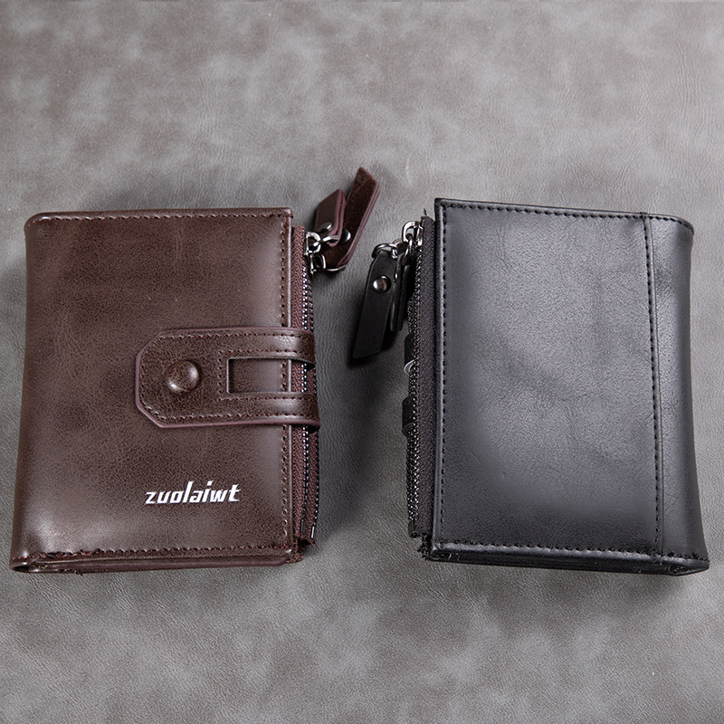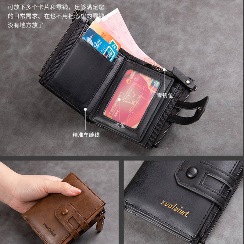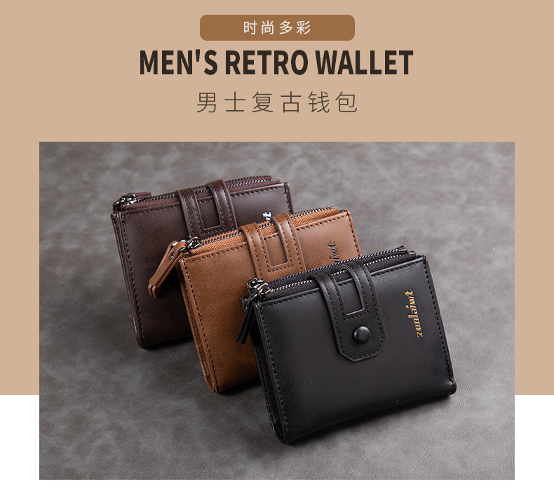 • メンズショートウォレット、レトロダブルファスナーウォレット、ファッショナブルなマルチカードスロット多機能小銭入れ