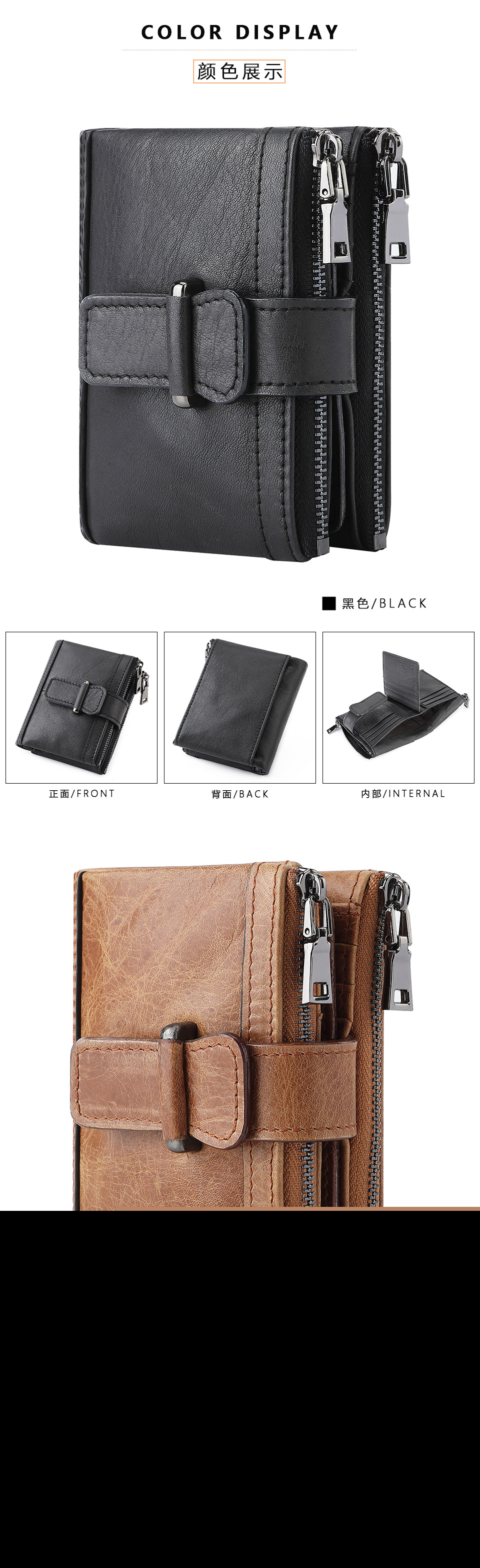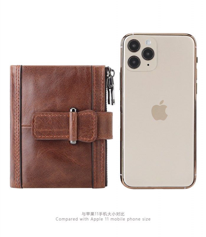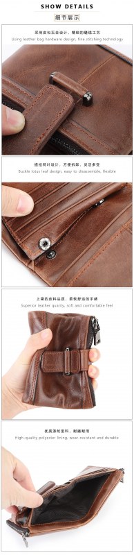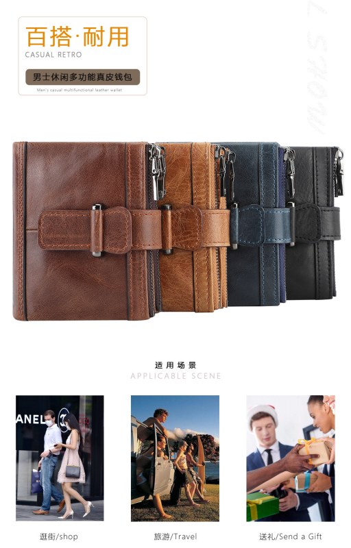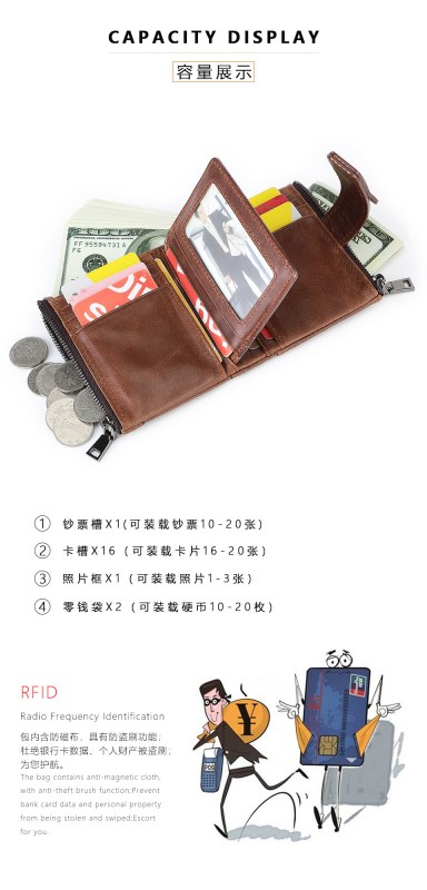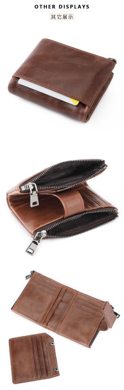 • 盗難防止ブラシジッパーバックル財布マルチカードスロット財布第一層牛革小銭入れ本革メンズ財布