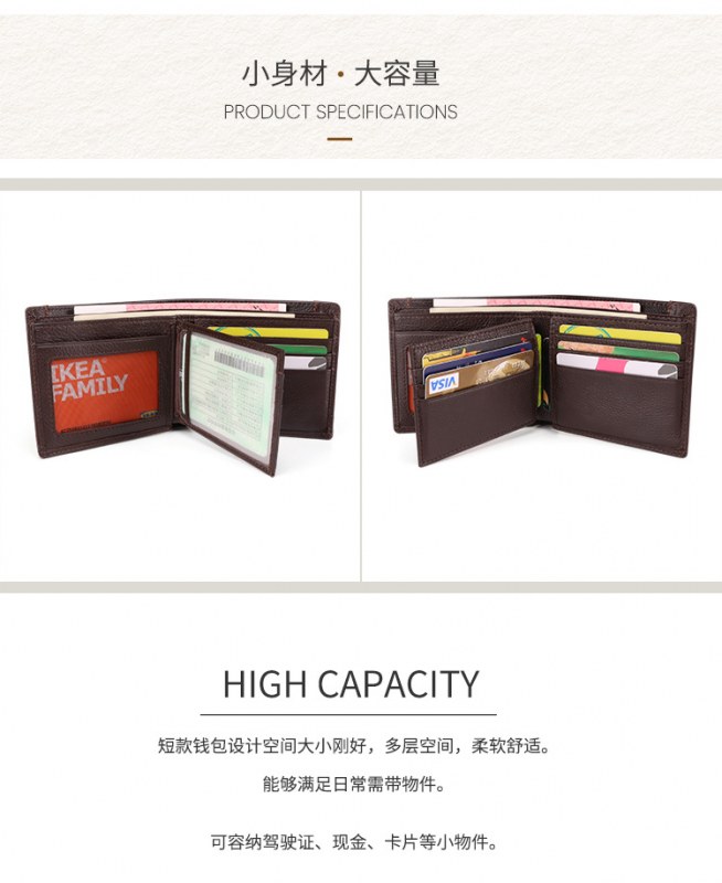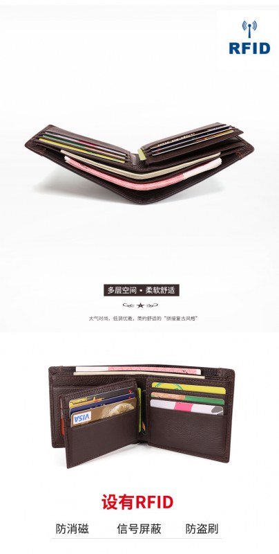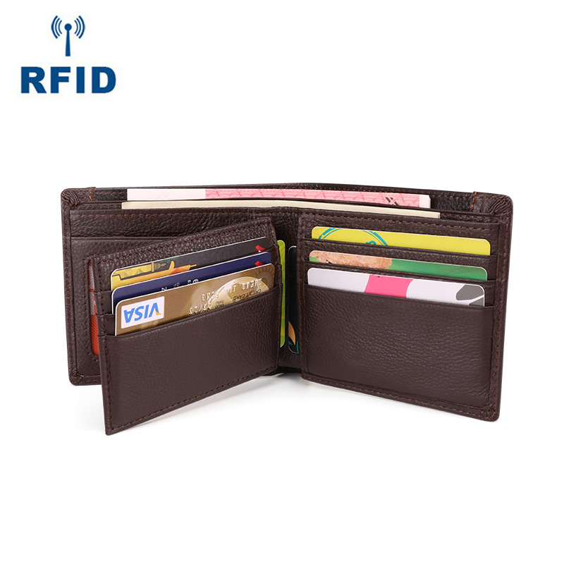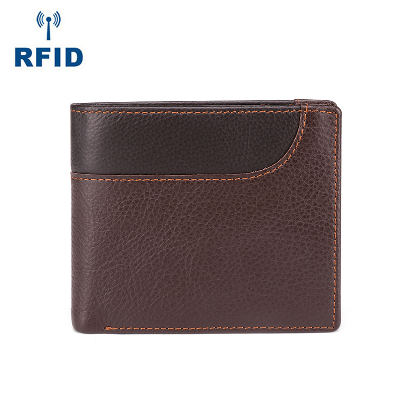 • メンズ本革財布、第一層牛革、マルチカードスロットショートウォレット、男性用RFID新しい財布