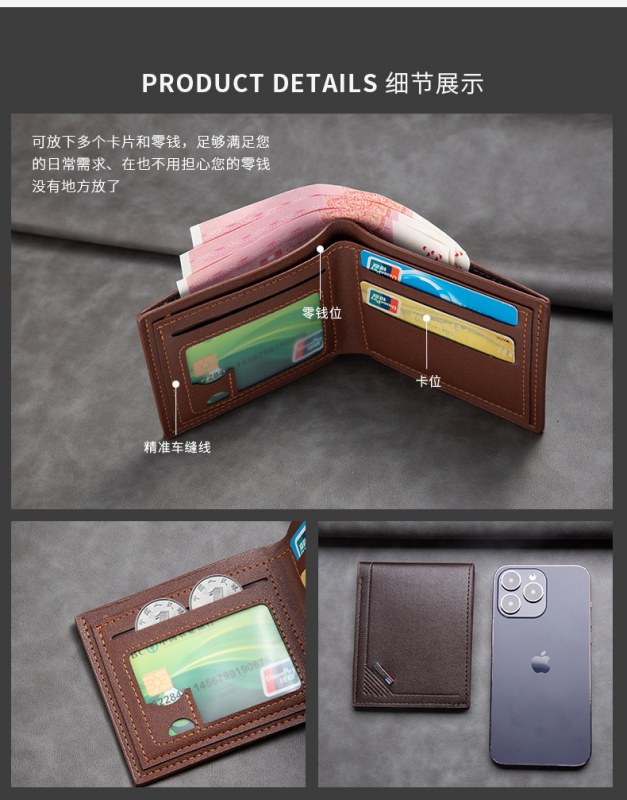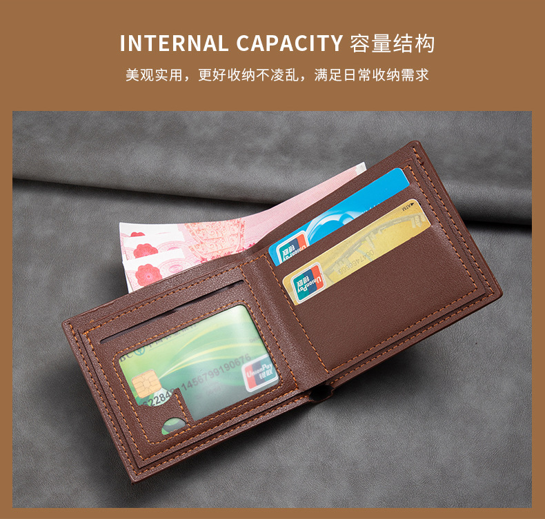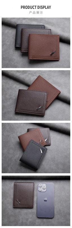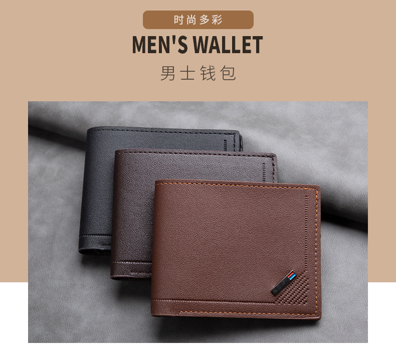 • メンズPU財布、ファッショナブルなソフトレザーショートウォレット、超薄型二つ折り学生財布小銭入れ