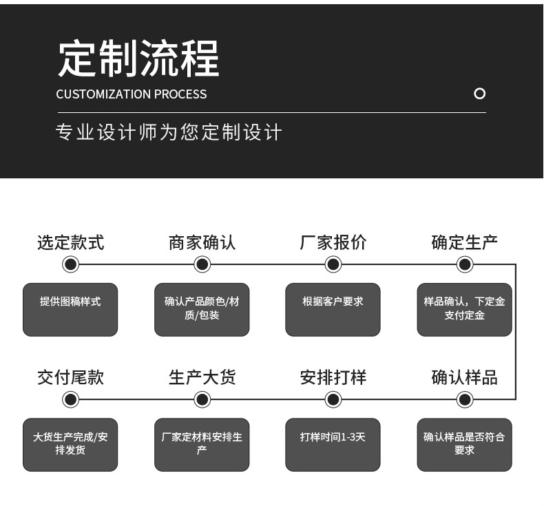 弊社が取り扱っている商品は、自社の海外工場から直送しています。ご入金が確認でき次第に商品を発送いたします。ご注文殺到時や、ご注文数量、種類が多い場合は、発送が遅れる可能性がございます、ご了承ください。ご注文商品の中に在庫がない商品につき、その商品のみキャンセルさせていただき、在庫のある商品のみをまとめて発送させていただきます。また、ご注文後の商品追加や、内容変更、同梱などはお受付しておりません。