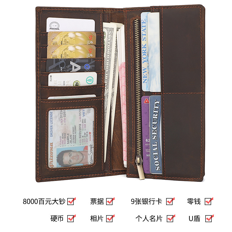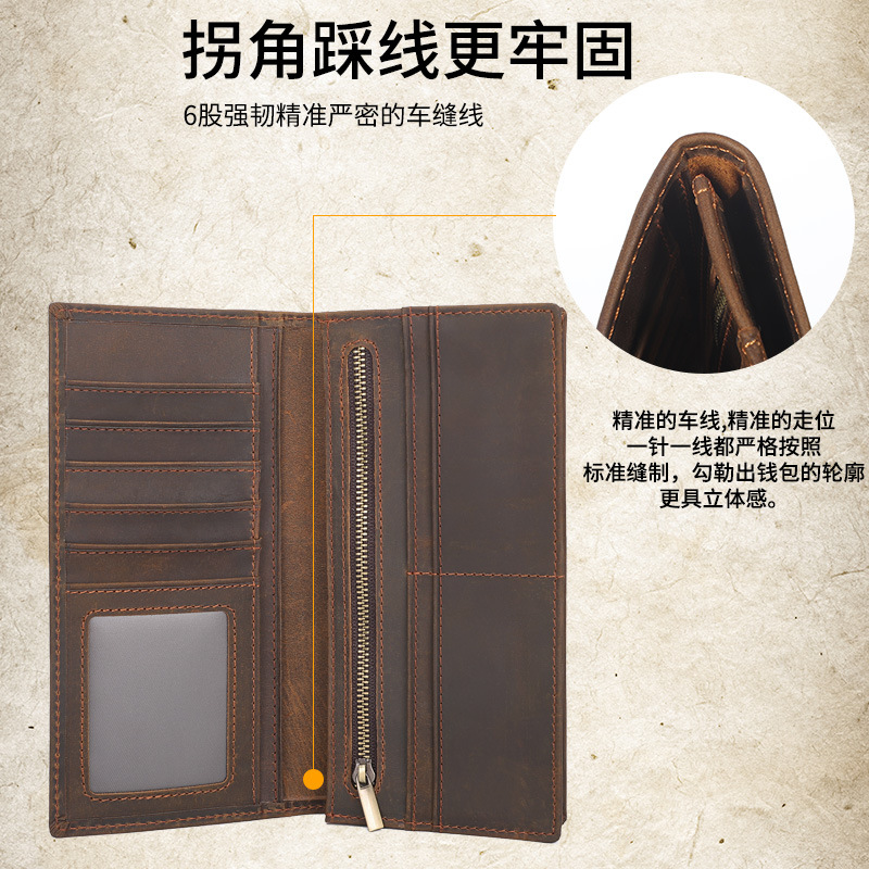 • メンズ 長財布 本革 極薄 クレイジーホース ベルトジッパーウォレット 大容量 マルチカードスロット 牛革 カードホルダー