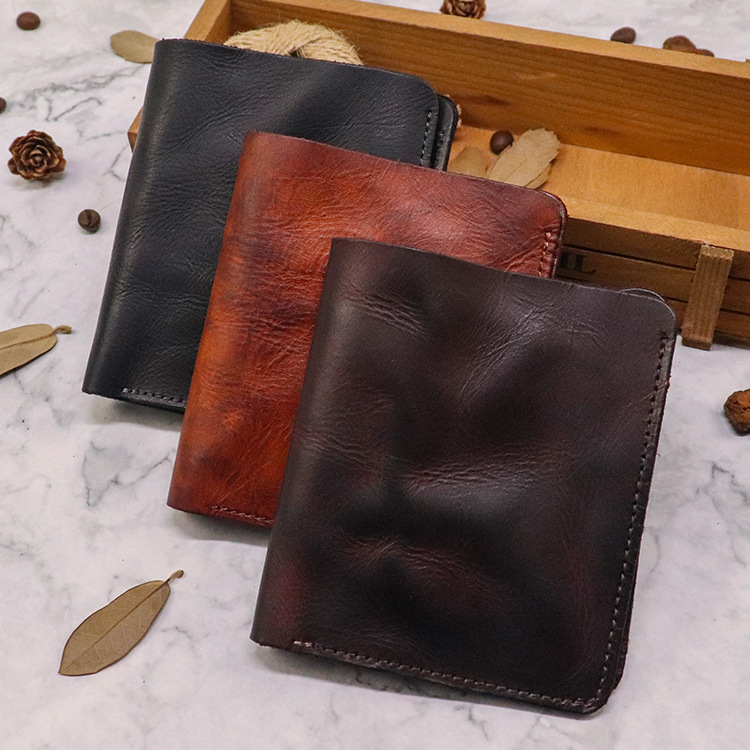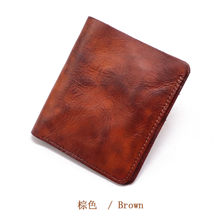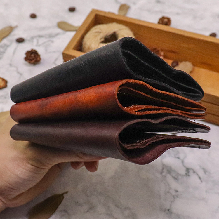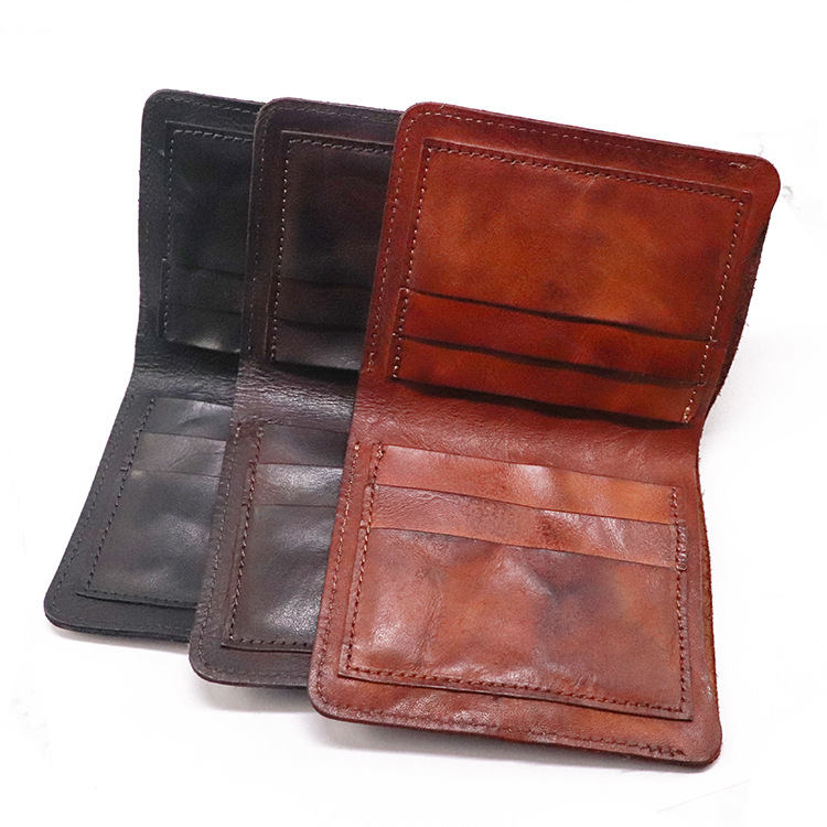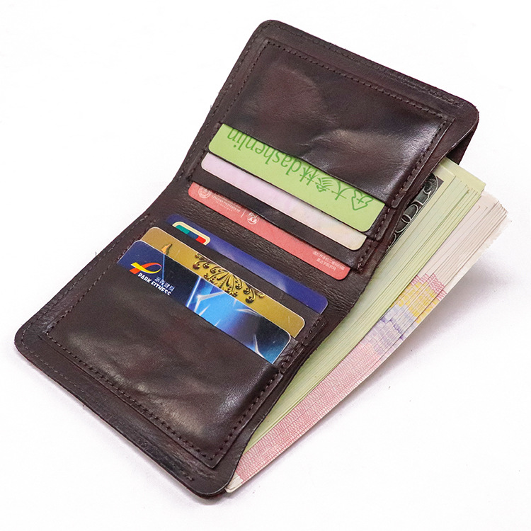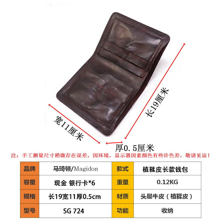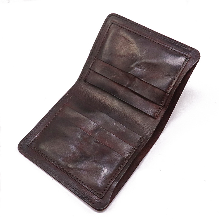 • 複数のカードスロットを備えた一層目の牛革ウォレット、植物タンニンなめしレザーウォレット、プリーツレトロ縦型ミニウォレット