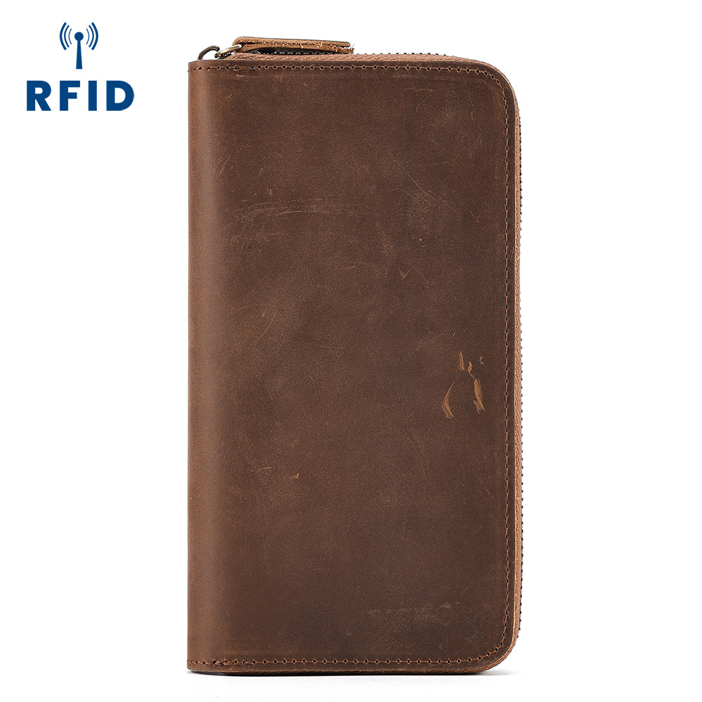• 財布 本革 ロング RFID 盗難防止 ブラシ メンズ 小銭入れ 大容量 ハイエンド メンズ 純牛革 男性用財布