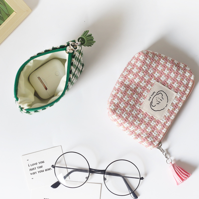 • 冬の新作女性用チェック柄小銭入れ、コンパクト、ポータブル、韓国風学生かわいい収納バッグ、黒と白のチェック柄ミニバッグ