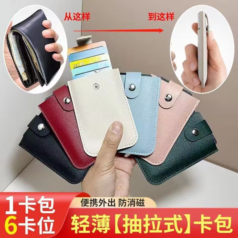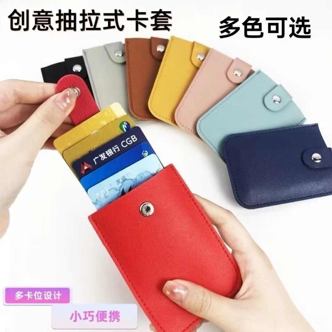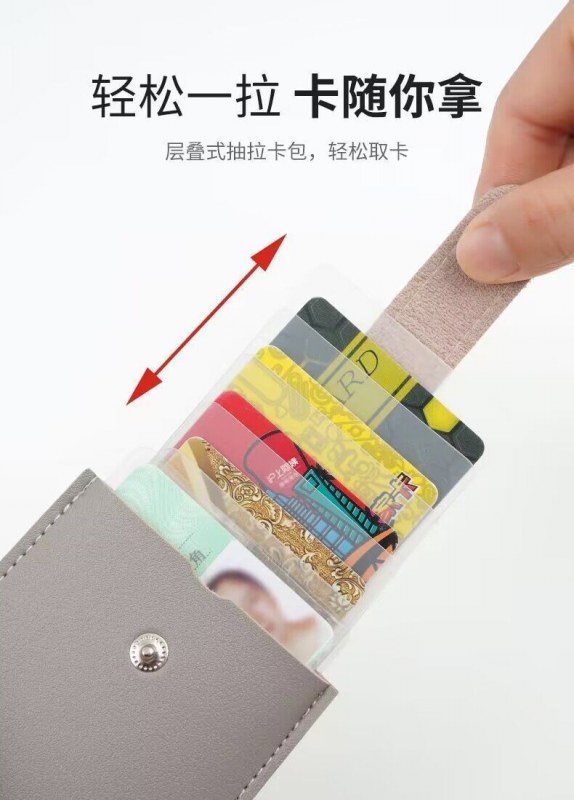 • 複数のカードスロットを備えた厚みのある引き出し式カードバッグ、PU スタック名刺ホルダー、スナップバックル付きレザーストラップ、少量バッチ、大容量