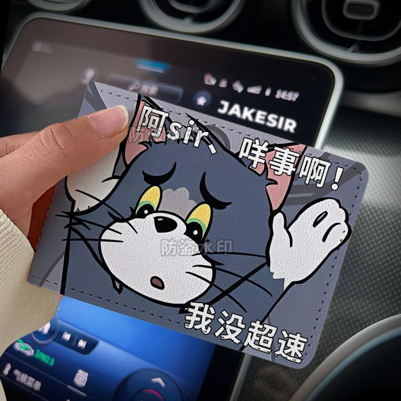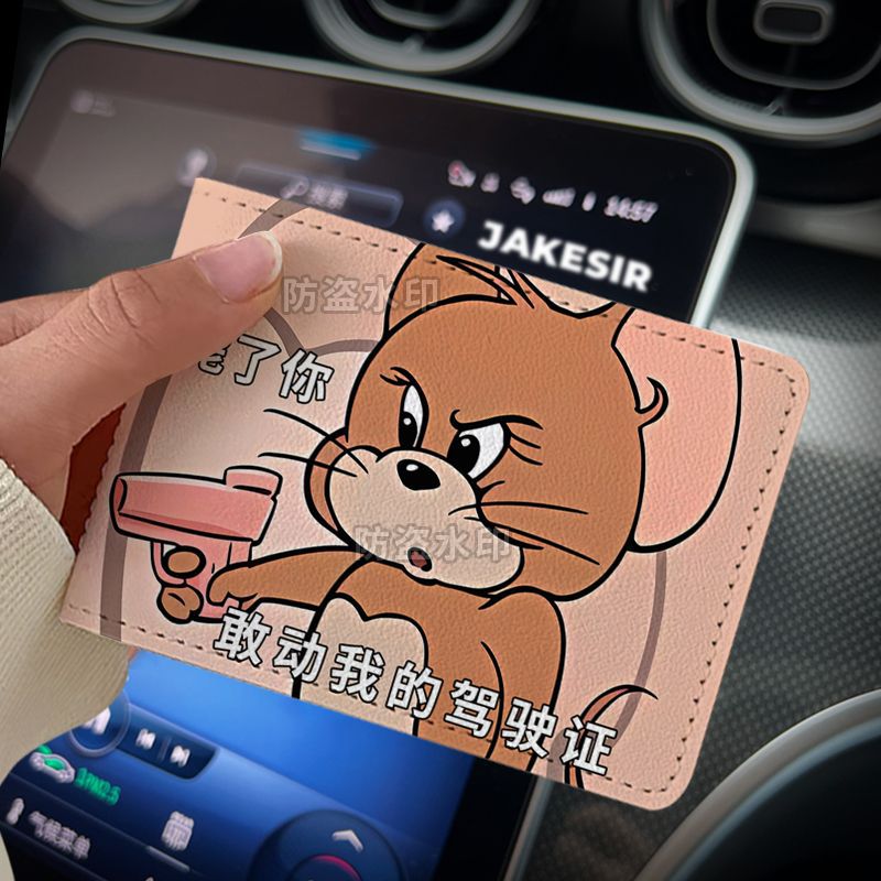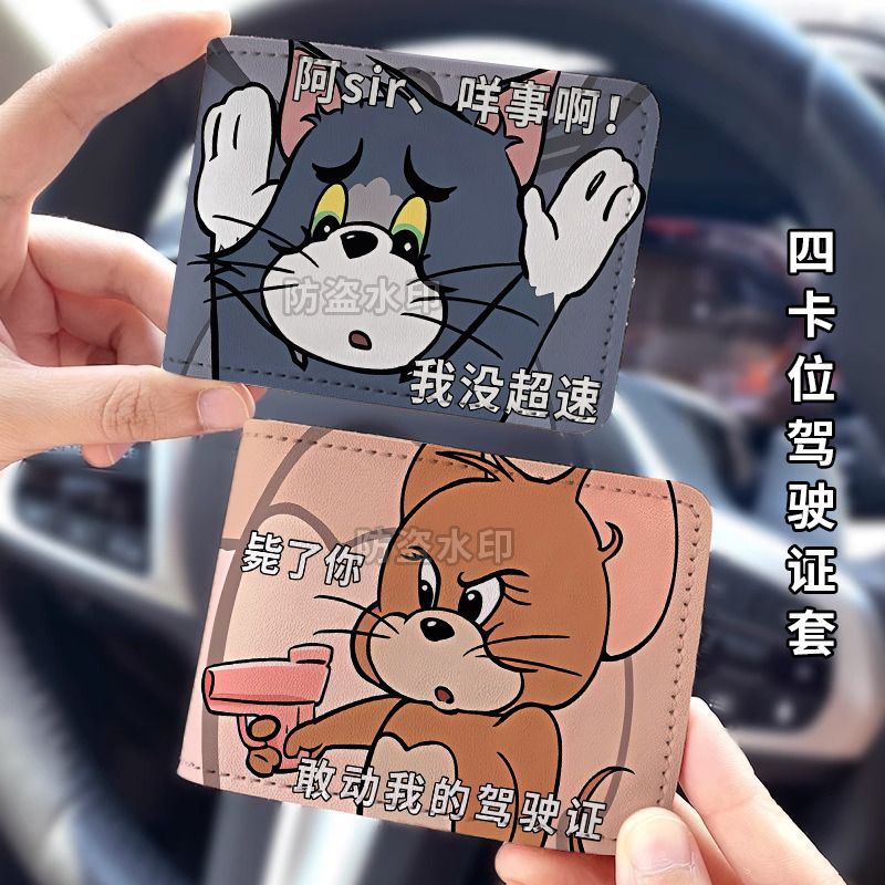 • トムとジェリー 面白い表情 車の運転免許証レザーケース 運転書類カバー 自動車免許保護カバー ツーインワン