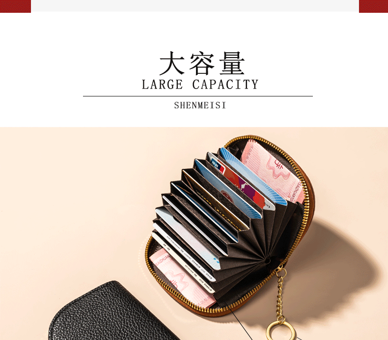 • ファッショナブルな小さなフレッシュシェル半円アコーディオンカードバッグ、複数のカードスロットと大容量のカードホルダーを備えた女性用クレジットカード収納バッグ