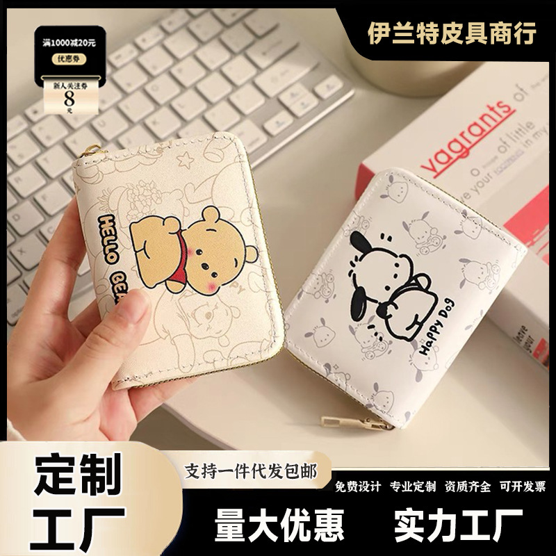 • かわいいパチャ犬漫画カードホルダー女性パーソナリティニッチ大容量ポータブル超薄型コンパクト運転免許証小銭入れ