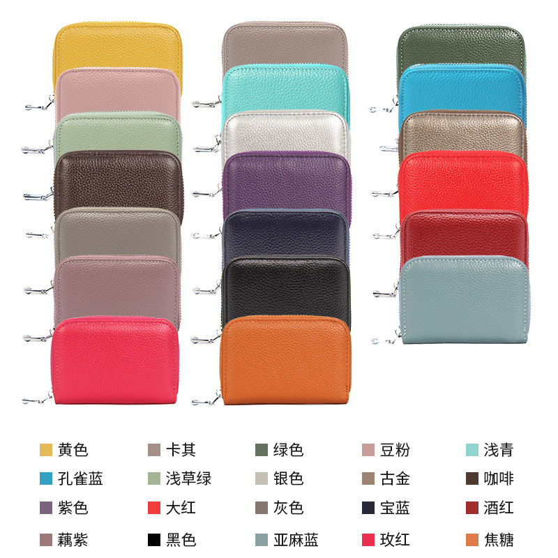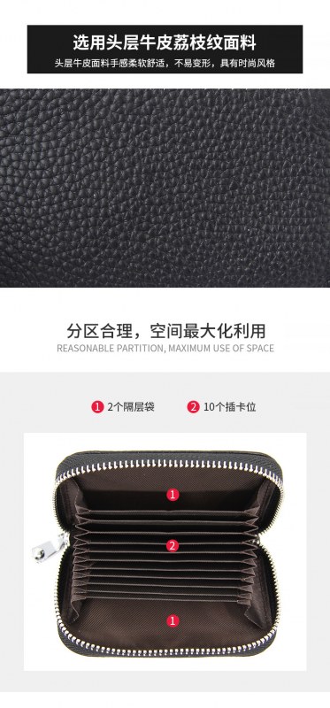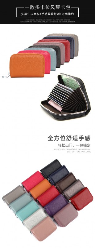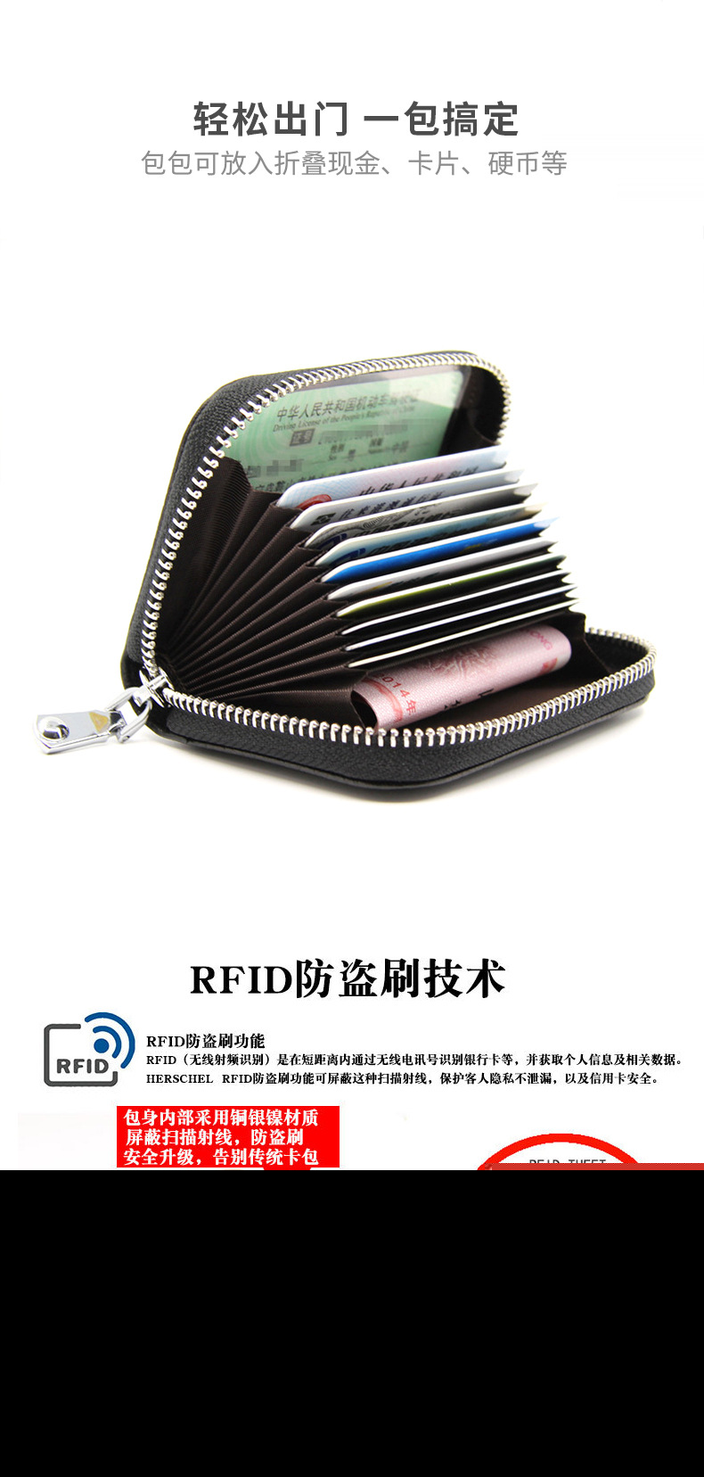 • アマゾンオルガン第一層牛革IDカードホルダーRFID盗難防止スワイプマルチカードスロット大容量ジッパー純正ピックアップバッグ