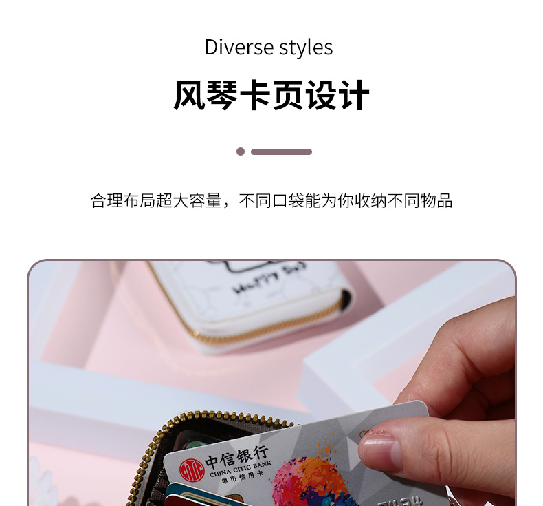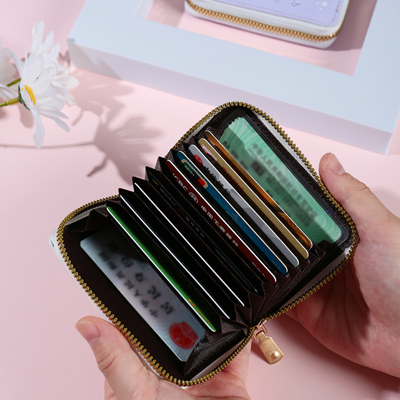 • 漫画ジッパーカードホルダー、消磁防止、大容量クレジットカードホルダー、アコーディオンカードホルダー、運転書類ホルダー、学生カードホルダー