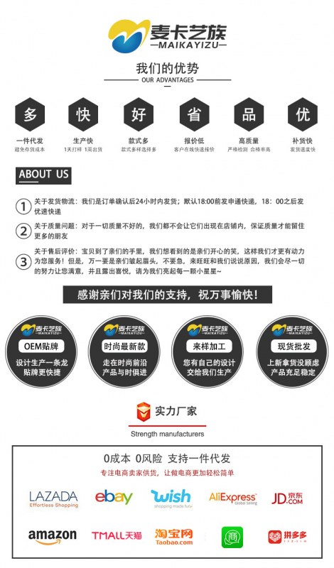 弊社が取り扱っている商品は、自社の海外工場から直送しています。ご入金が確認でき次第に商品を発送いたします。ご注文殺到時や、ご注文数量、種類が多い場合は、発送が遅れる可能性がございます、ご了承ください。ご注文商品の中に在庫がない商品につき、その商品のみキャンセルさせていただき、在庫のある商品のみをまとめて発送させていただきます。また、ご注文後の商品追加や、内容変更、同梱などはお受付しておりません。