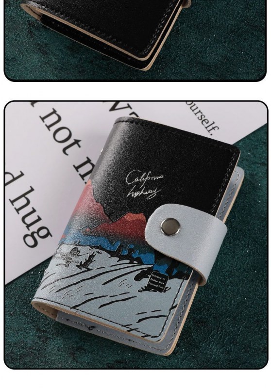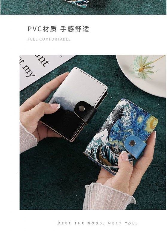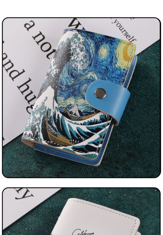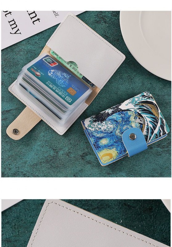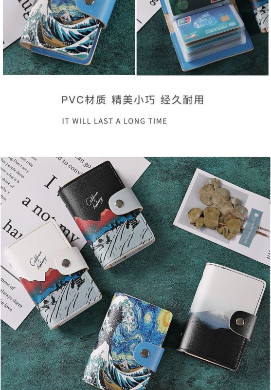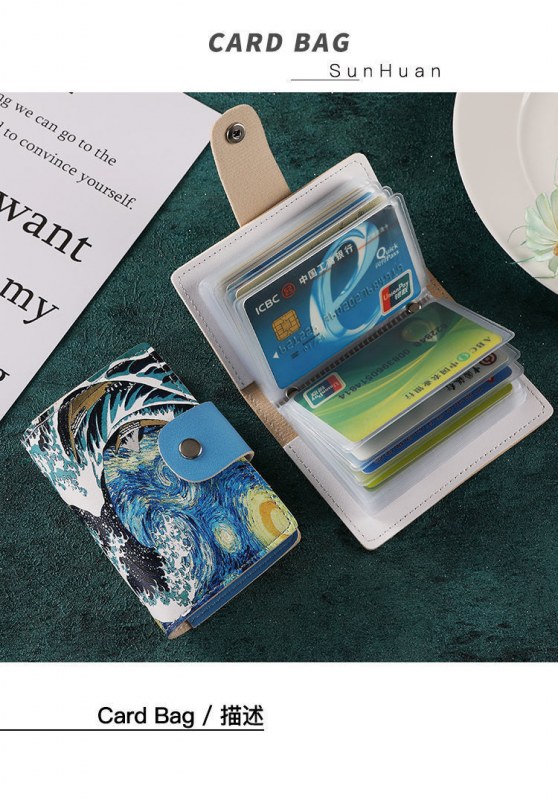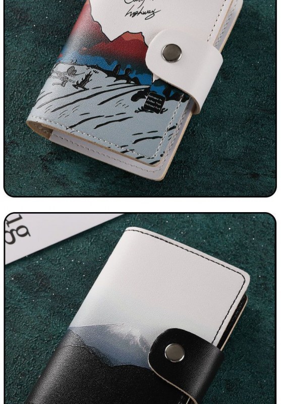 • カードホルダー 富士山 複数のカードスロット 大容量 レザー バンクカード 収納バッグ ID 油絵
