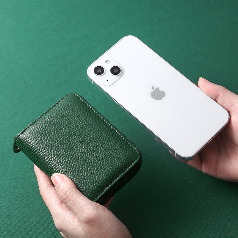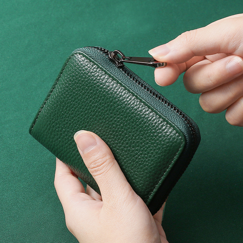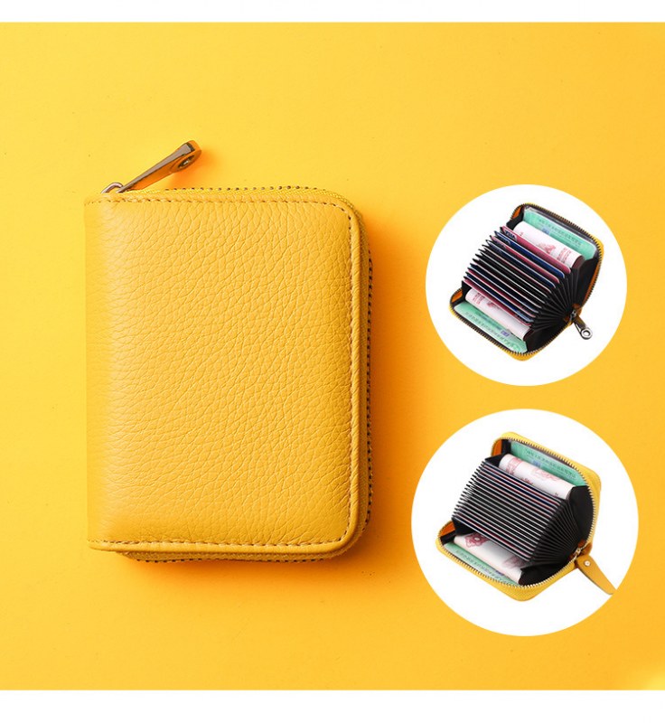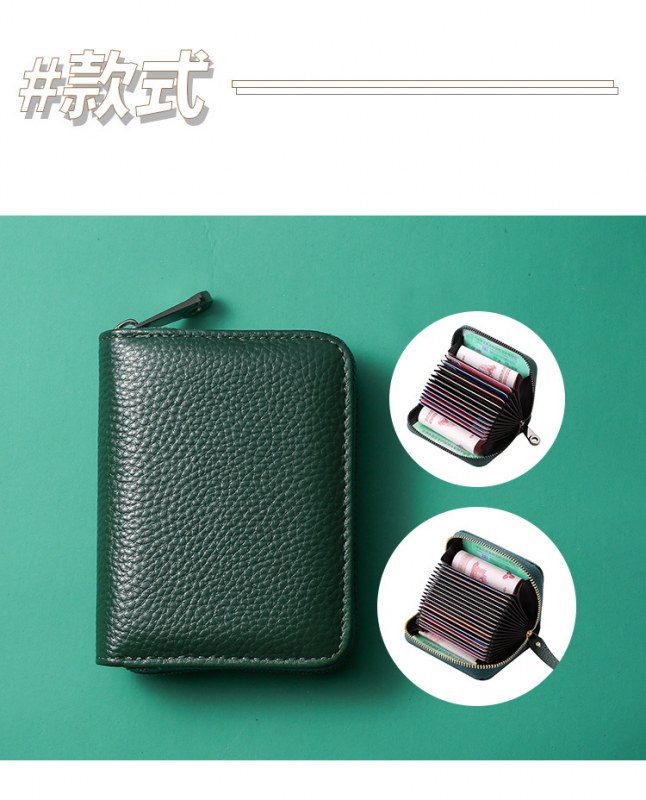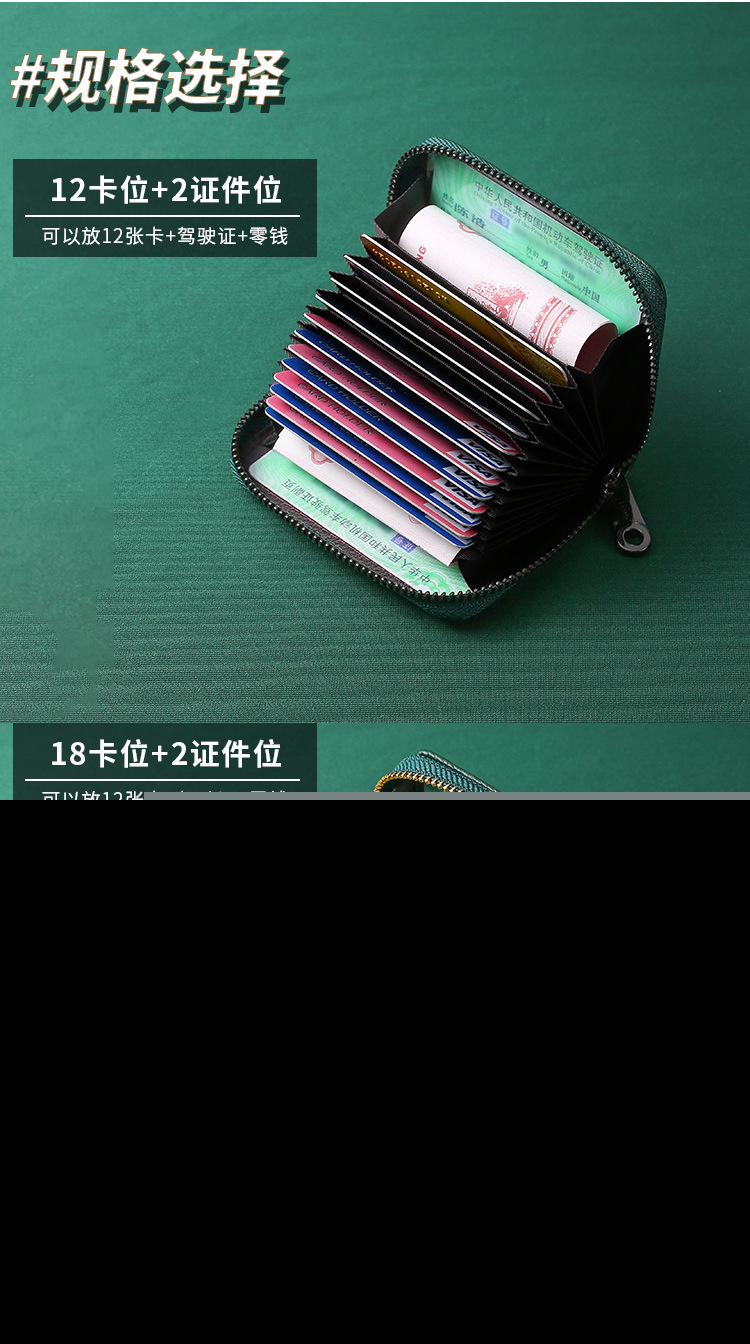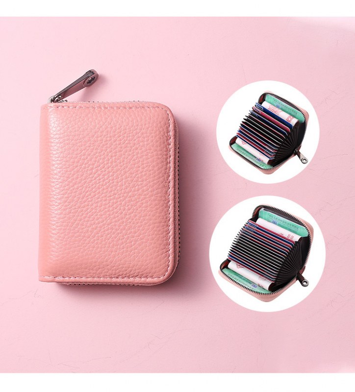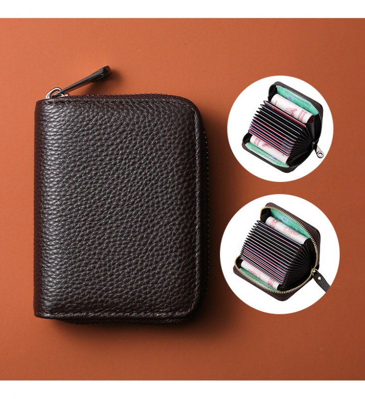 • RFID 第一層牛革アコーディオンカードホルダー、大容量、複数のカードスロット、女性用純正カードホルダー、男性用 ID カード、小銭入れ