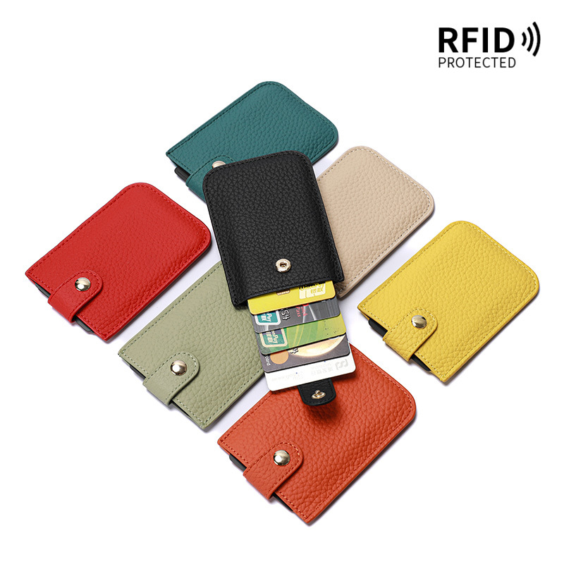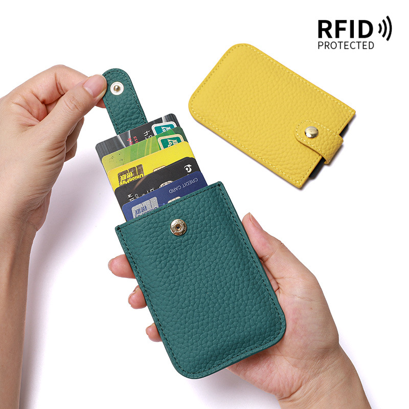 • ラミネート引き出しカードホルダー本革新しい rfid 名刺ホルダーカードホルダーポータブル超薄型小銭入れコンパクト女性