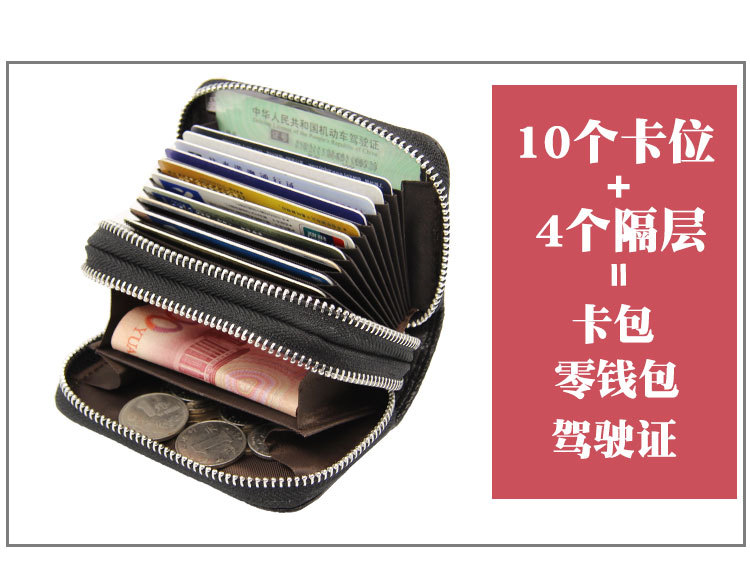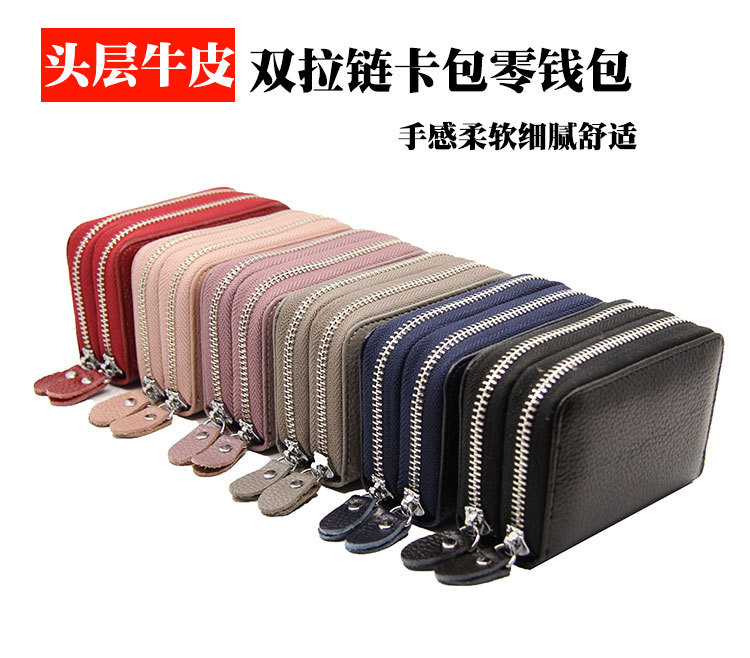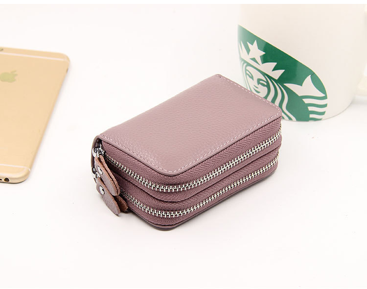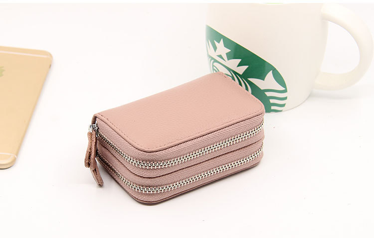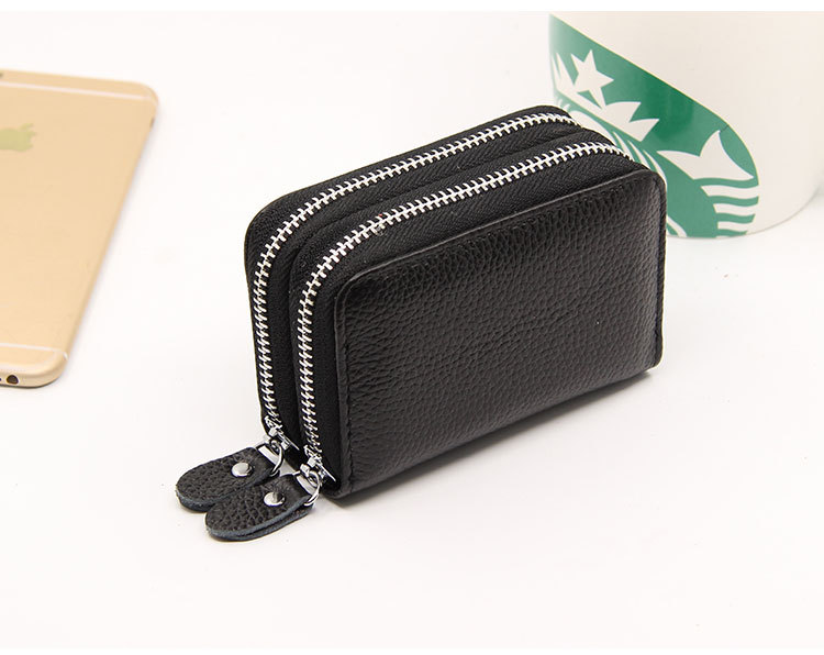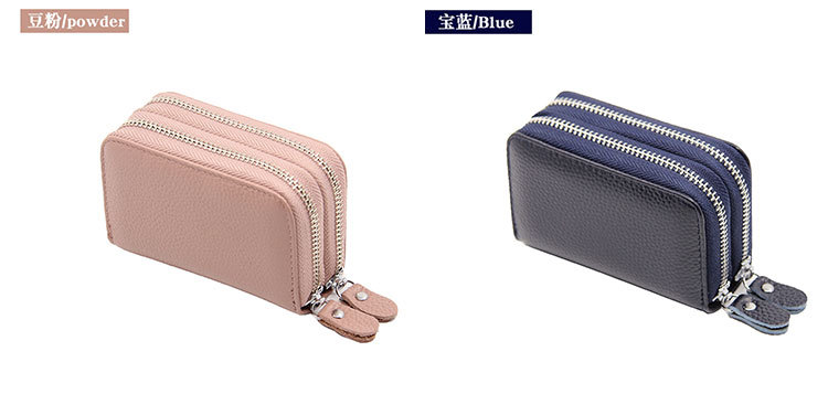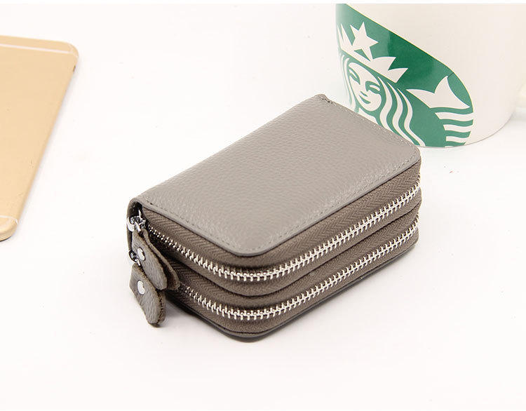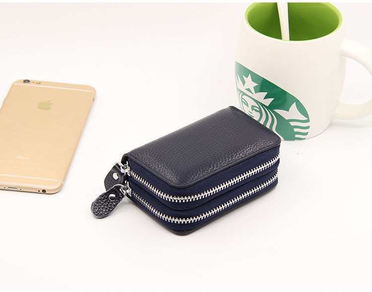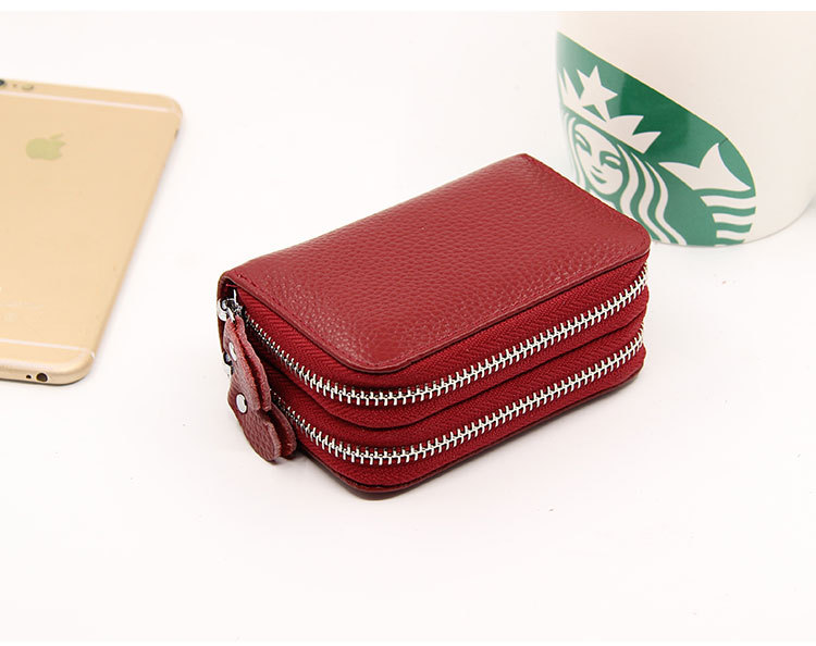• 第一層牛革ダブルジッパー名刺バッグ RFID 盗難防止アコーディオン本物のカードバッグマルチカードスロットカードバッグ卸売