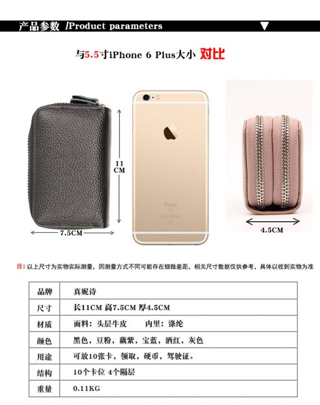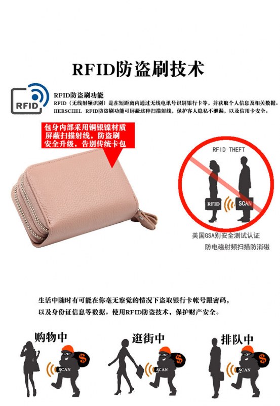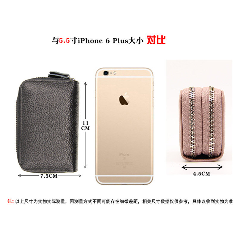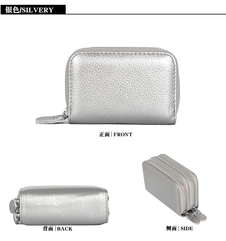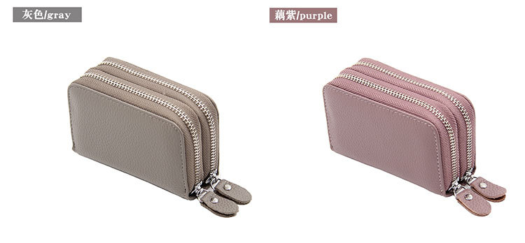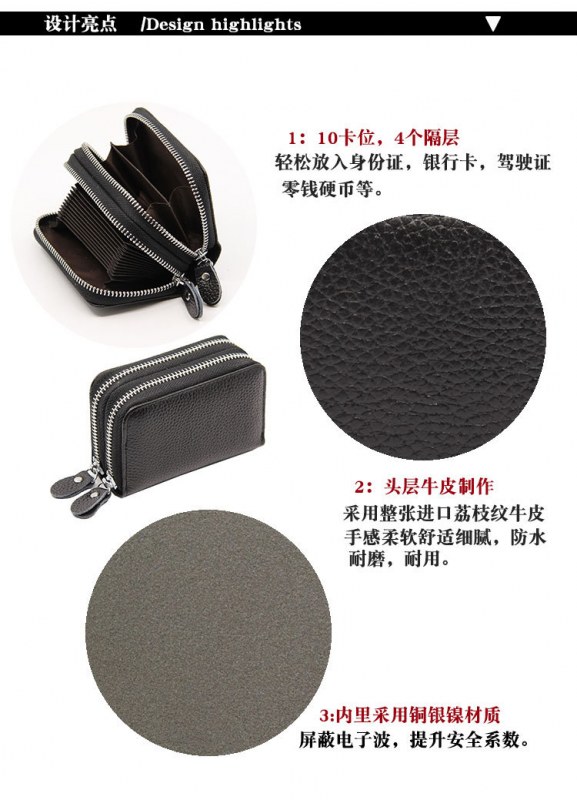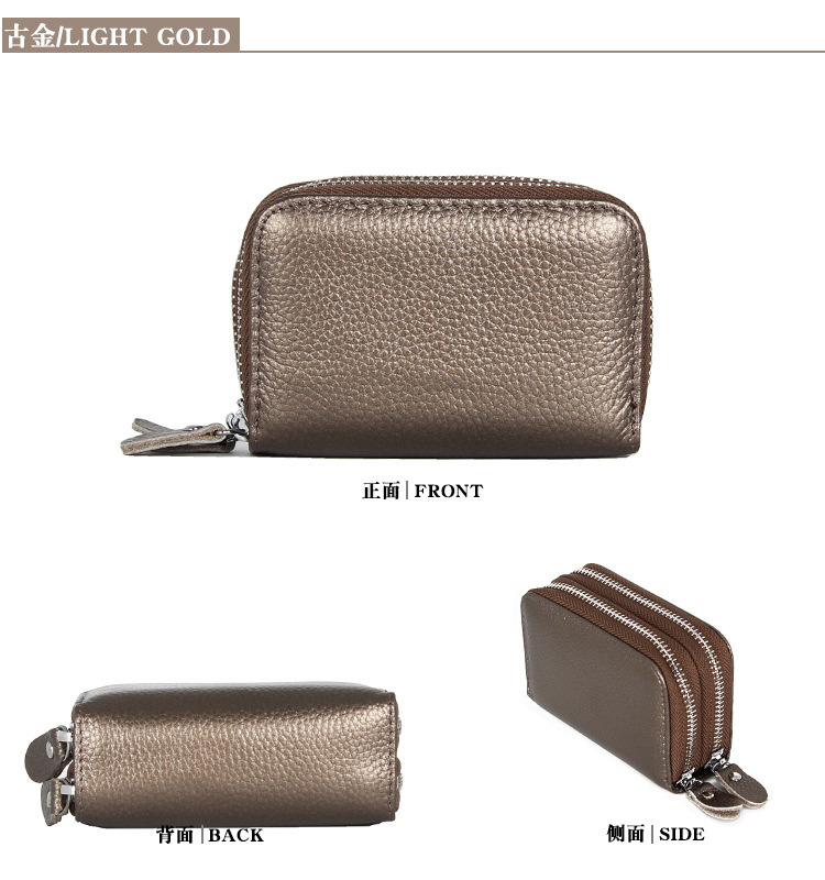 • 第一層牛革ダブルジッパー名刺バッグ RFID 盗難防止アコーディオン本物のカードバッグマルチカードスロットカードバッグ卸売
