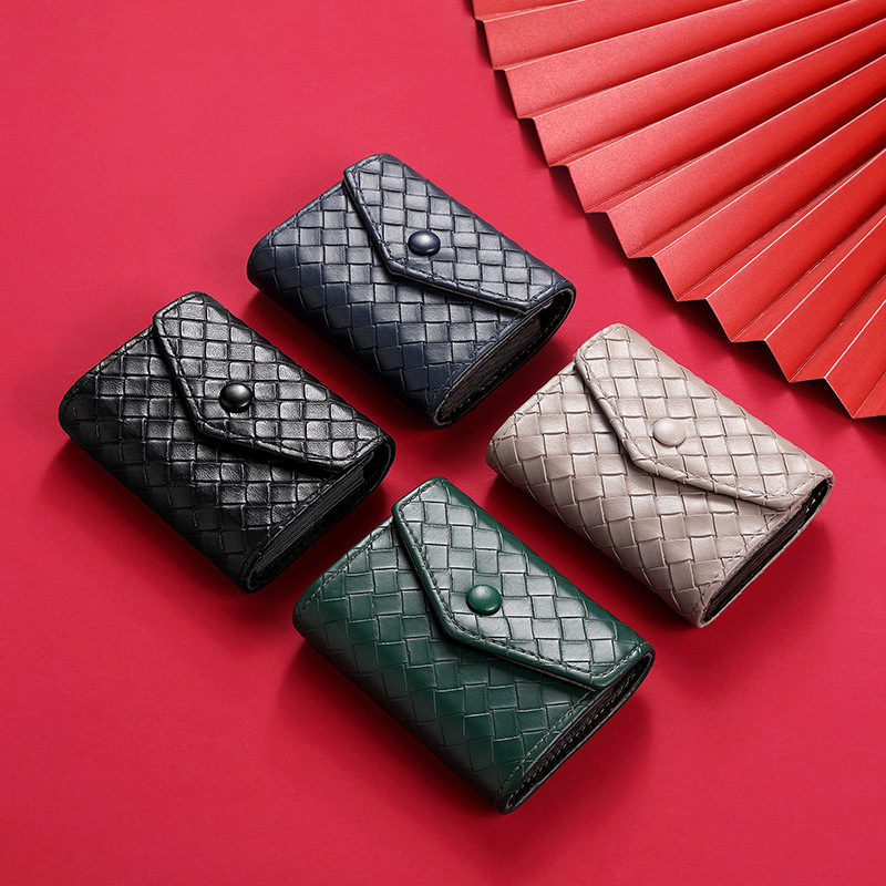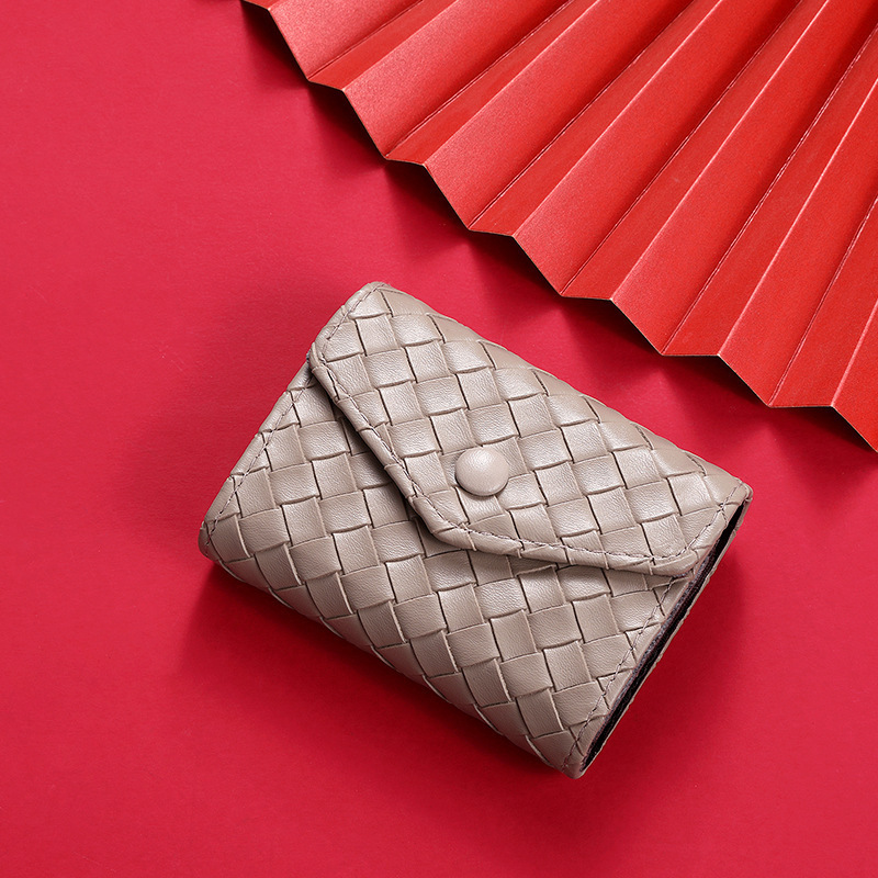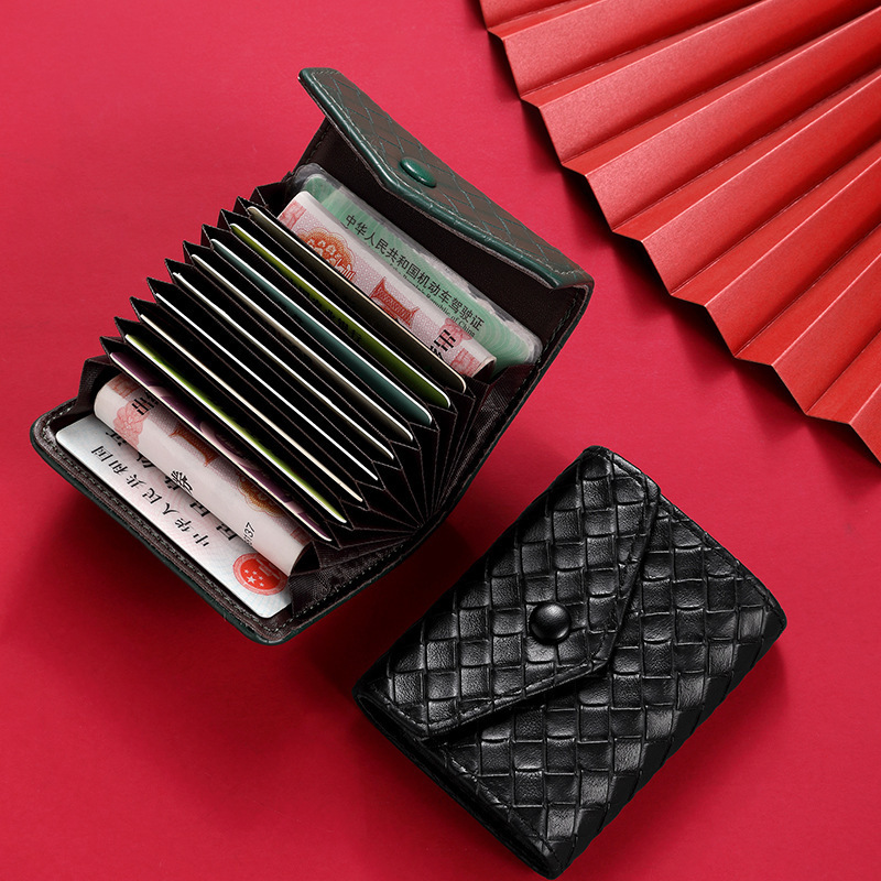 • シンプルな織り女性のカードバッグ 2022 新しい折りたたみ ID バッグ抗消磁銀行カードオルガンコンパクトカードバッグ