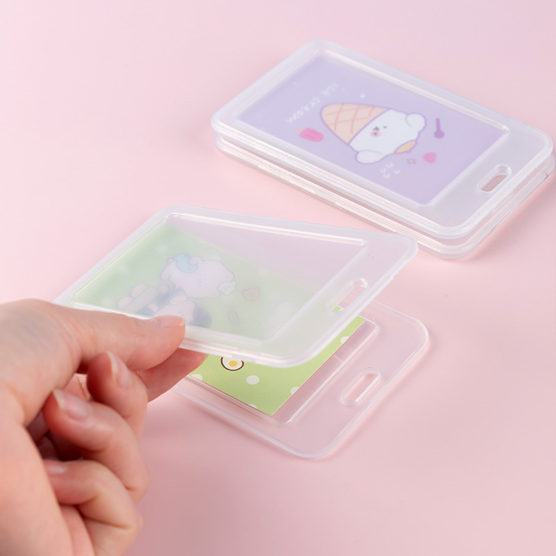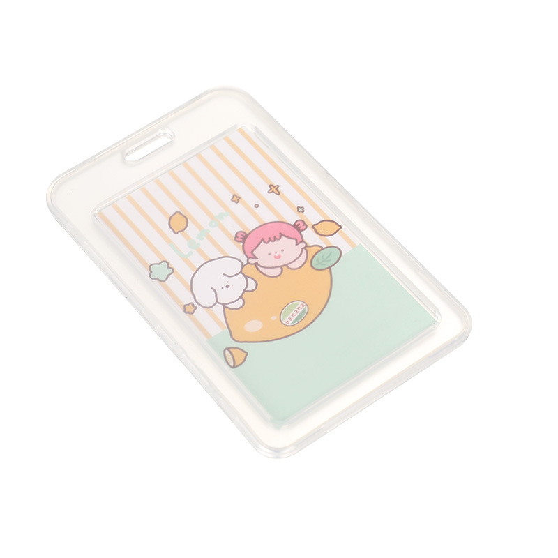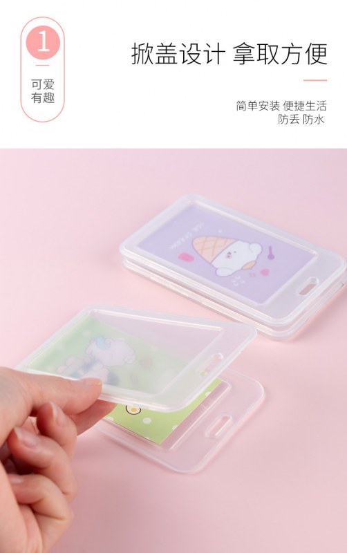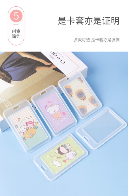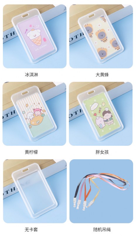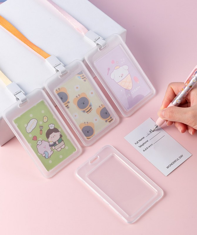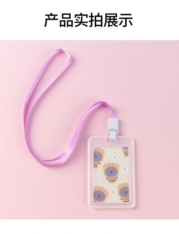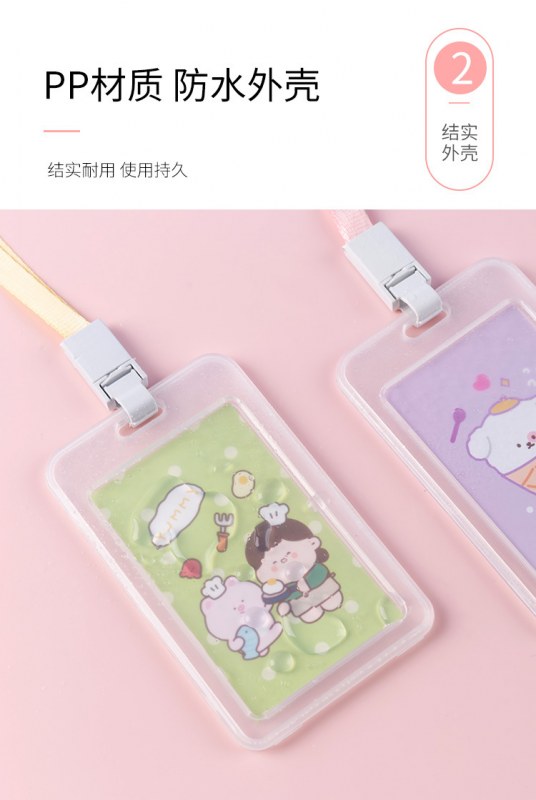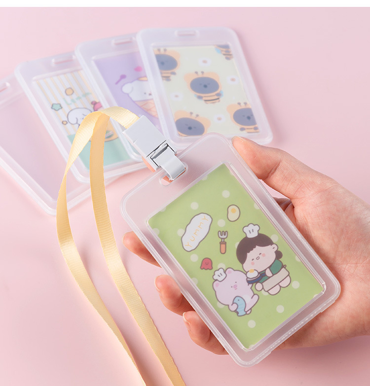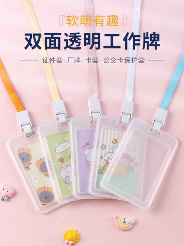• 両面透明ワークバッジ漫画プラスチック学生食事バッジフリップワークバッジストラップ胸カード保護カバー