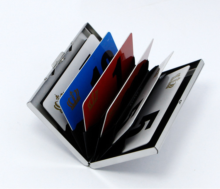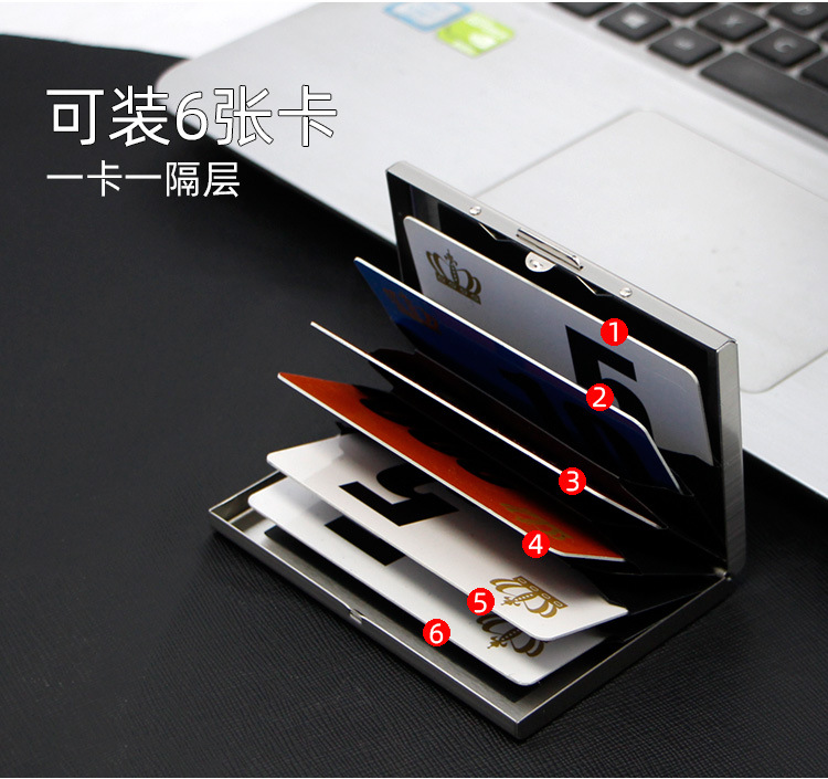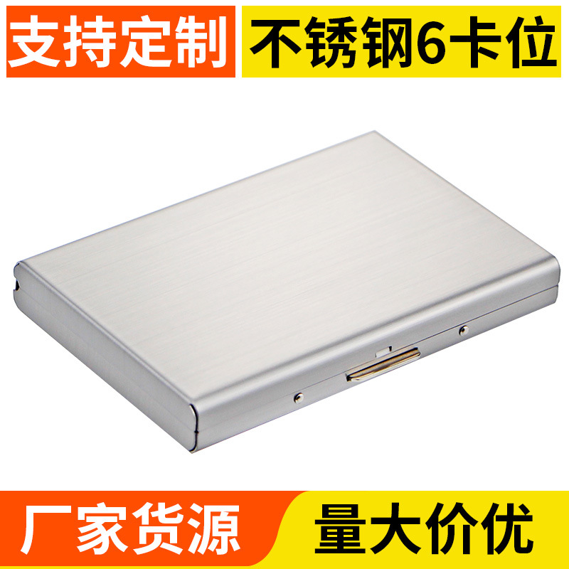 • ステンレス鋼メタルカードホルダー 6 カードスロット NFC 盗難防止ブラシ消磁男性と女性の名刺ホルダー収納銀行カードボックス