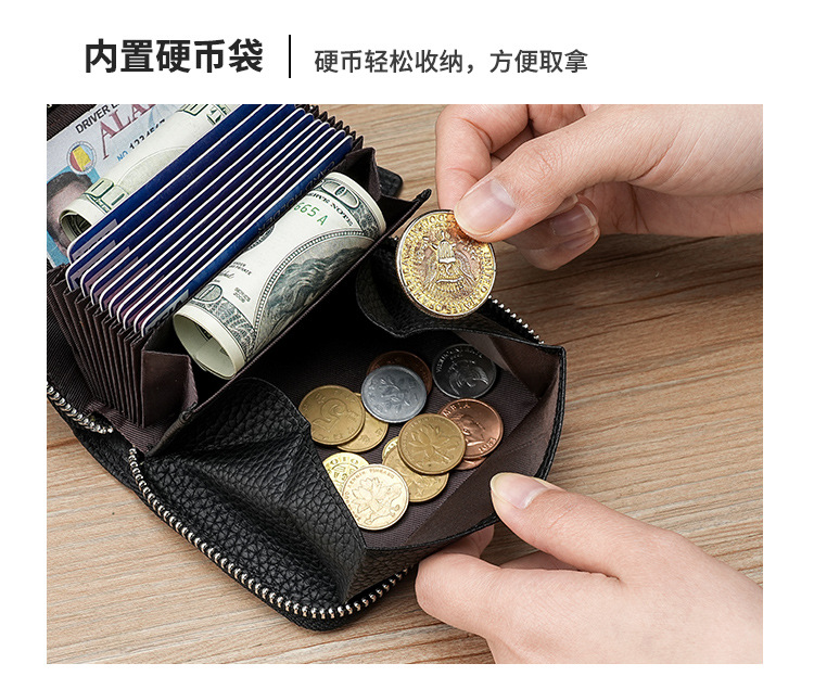 • 多機能本革アコーディオンカードホルダーカードホルダーRFID牛革日本製コインバッグメンズとレディースマルチカードスロット小銭入れ