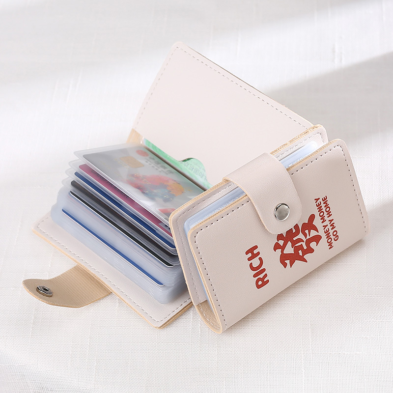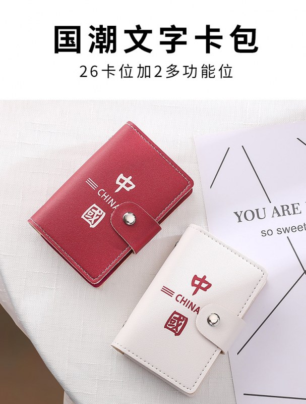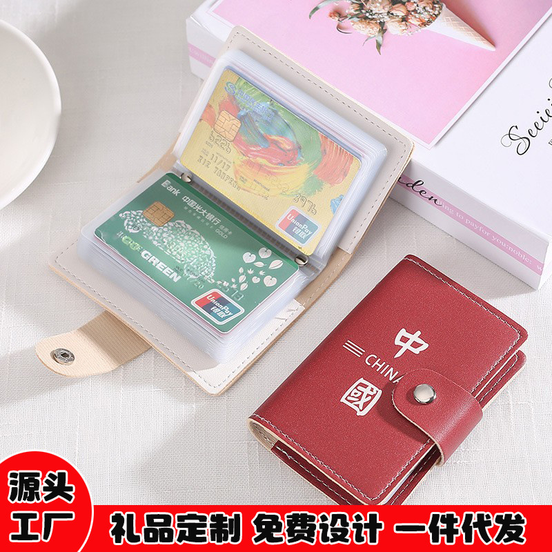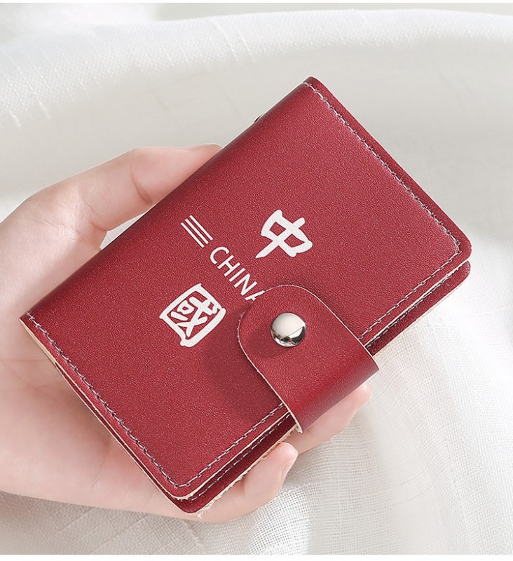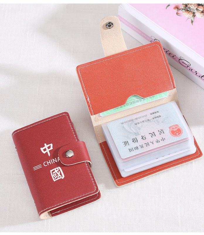 • Light of Faith チャイニーズレッド 大容量 実用的 PU レザー ページ ID カードホルダー レザーカードホルダー
