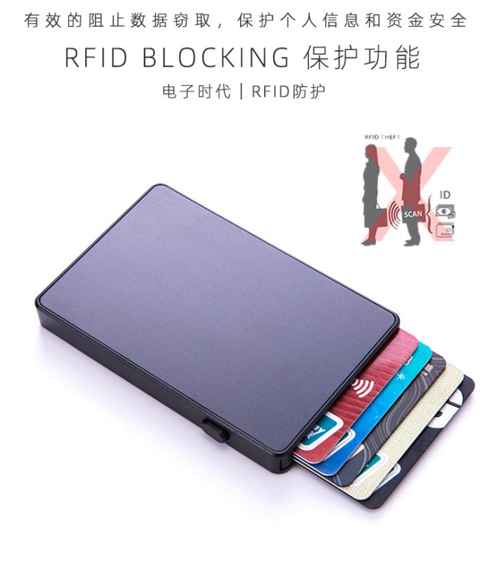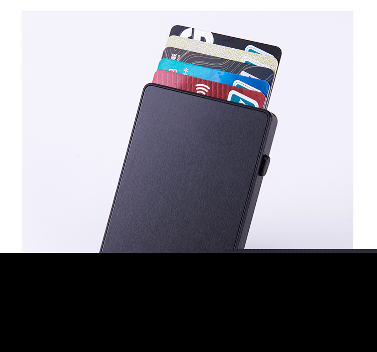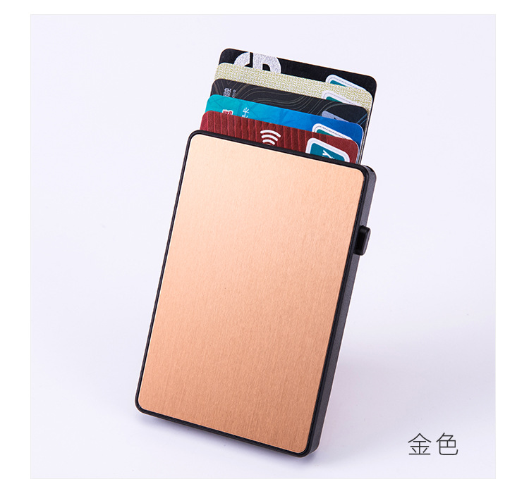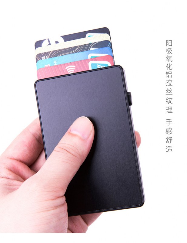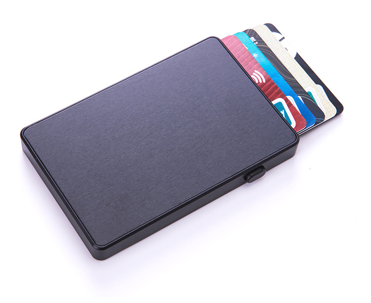 • シールド付きRFID盗難防止ブラシ自動ポップアップカードボックスアルミニウム合金クレジットカード銀行カードボックス