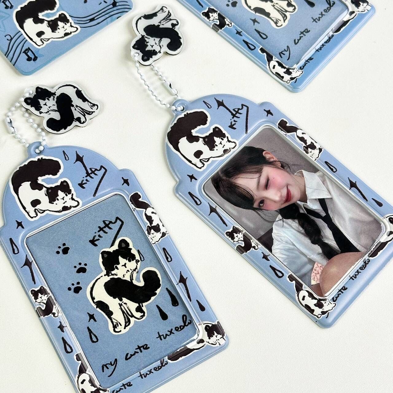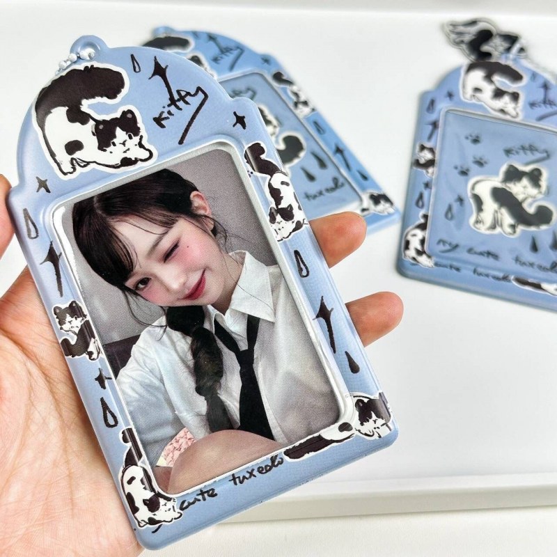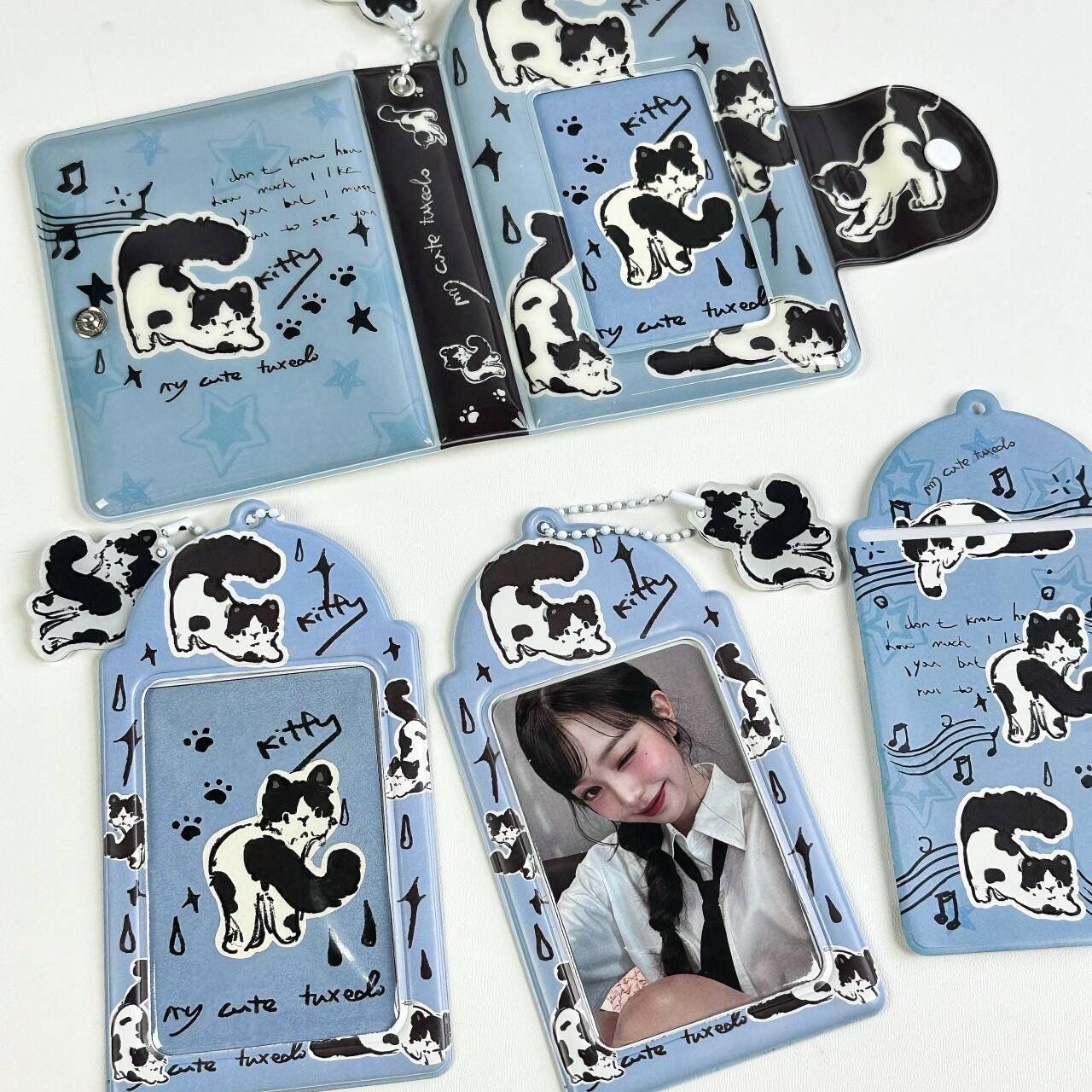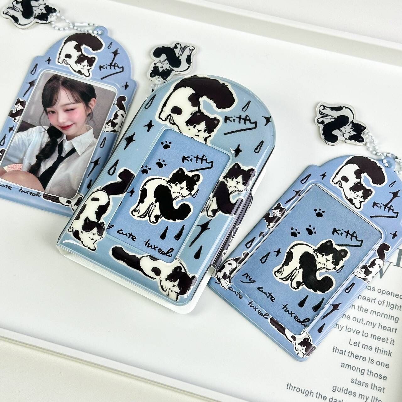 • オリジナルインかわいい牛猫カードホルダー/カードホルダー 3 インチ 1 正方形グリッドスター追跡小さなカード収納ブック食事カード ID セット