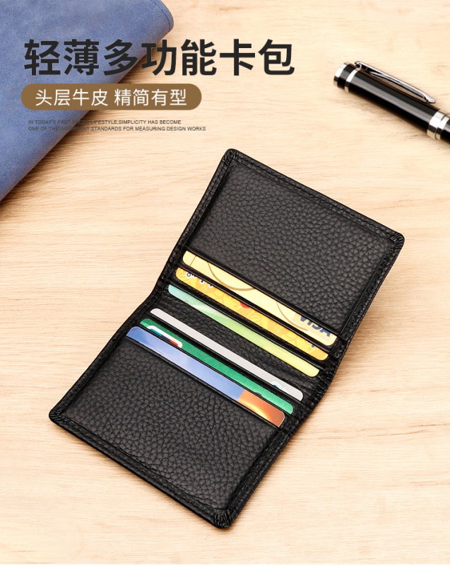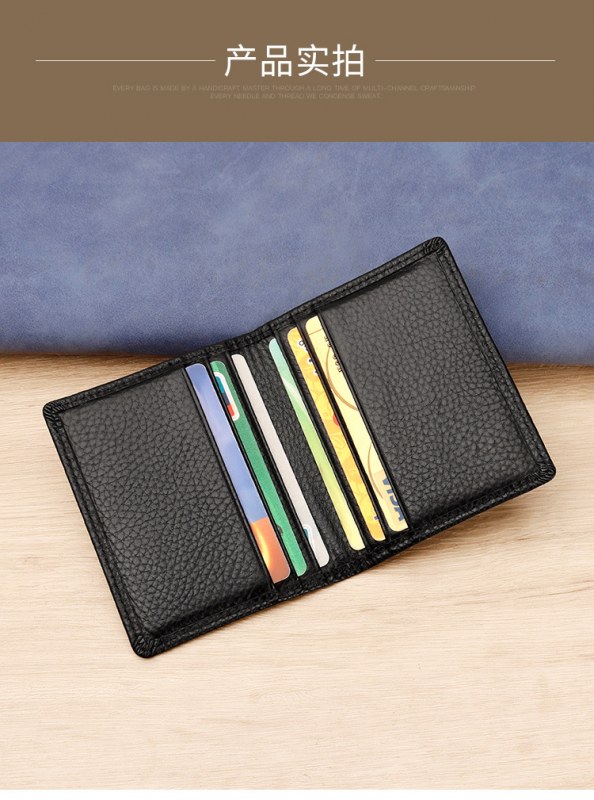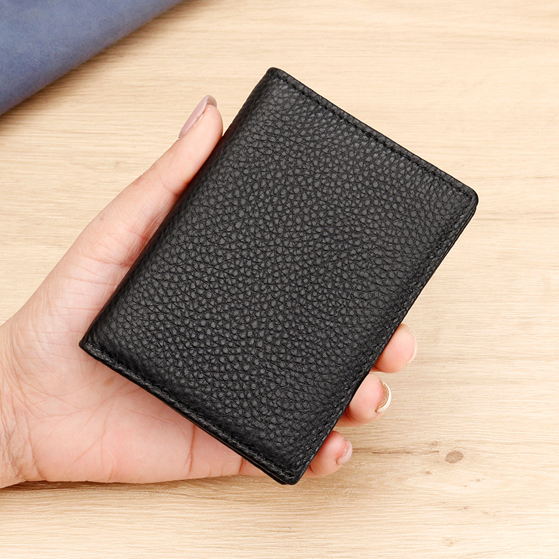 • 本革製小型カード ホルダー、耐磁性 RFID、小石仕上げの第 1 層牛革クレジット カード ホルダー、男性と女性用