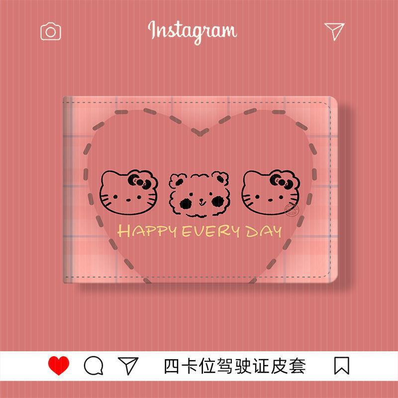 • ハローキティ 女の子 車 運転免許証 保護カバー レザーケース 自動車運転免許証 運転免許証書類 ツーインワン