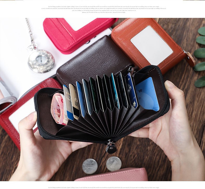 • 複数のカードスロットと大容量RFIDを備えた牛革アコーディオンカードホルダー、盗難防止の女性用カードホルダーと男性用クレジットカードホルダー