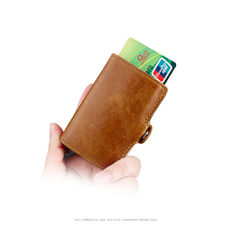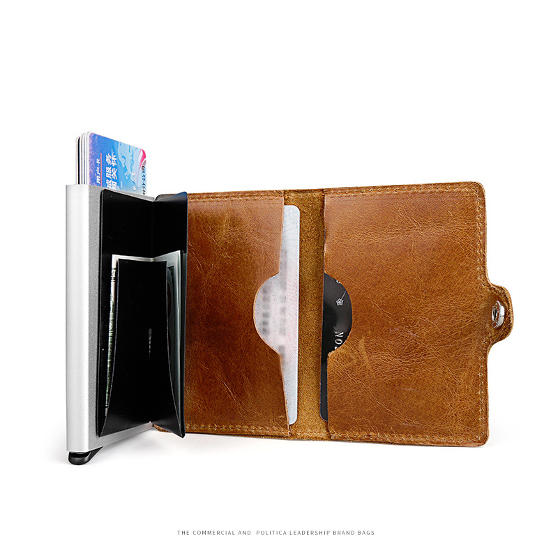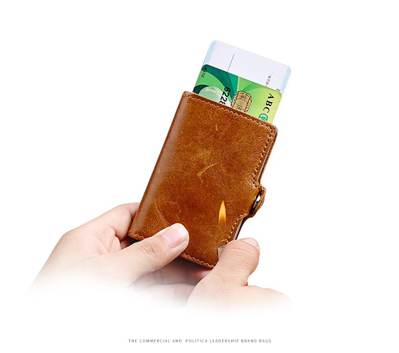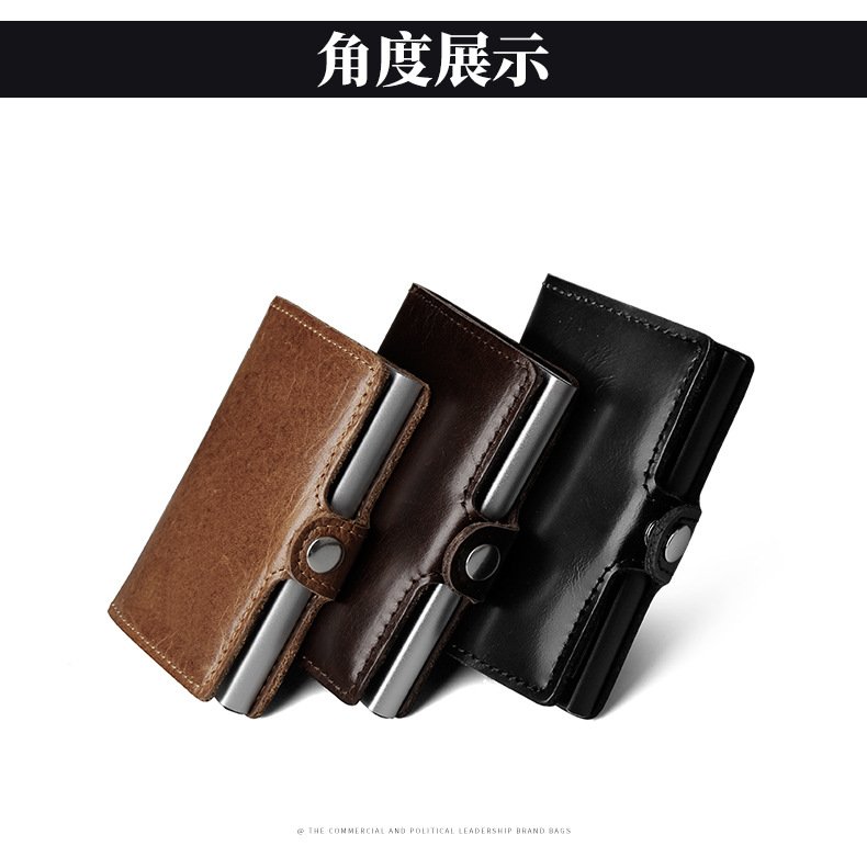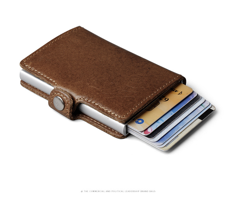 • 盗難防止用つや消しアルミニウム合金カード ホルダー、自動カード取り出し機能付き RFID レザー メタル カード ボックス