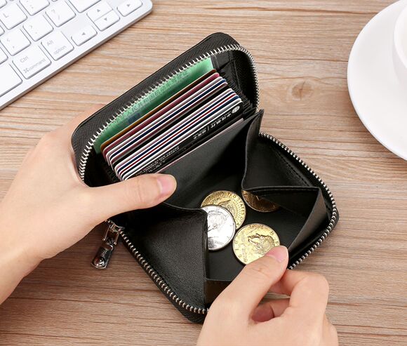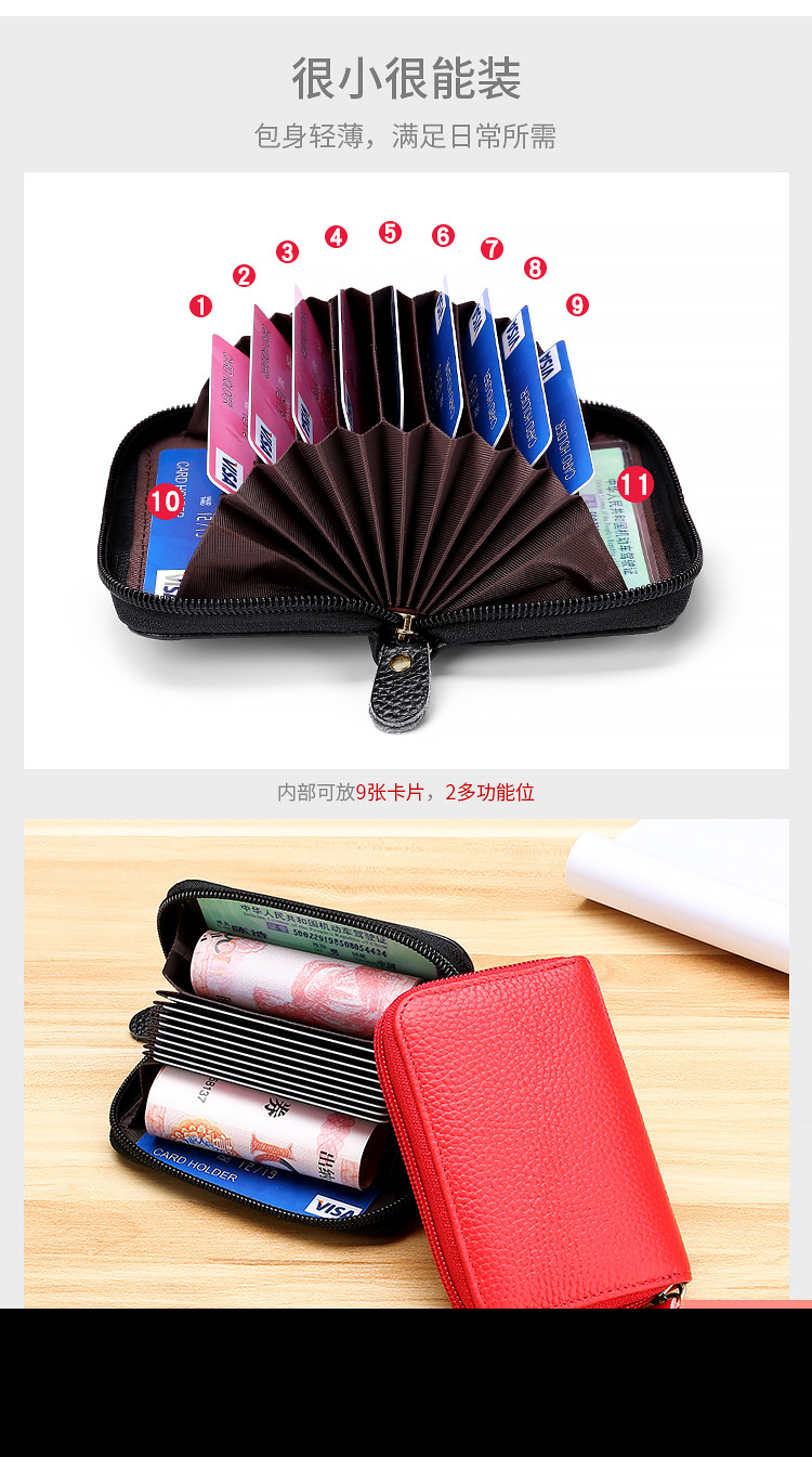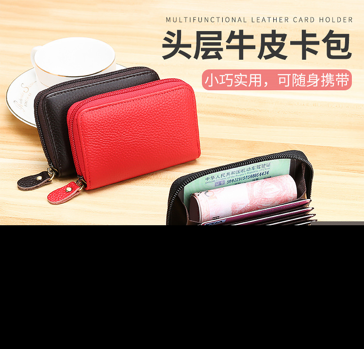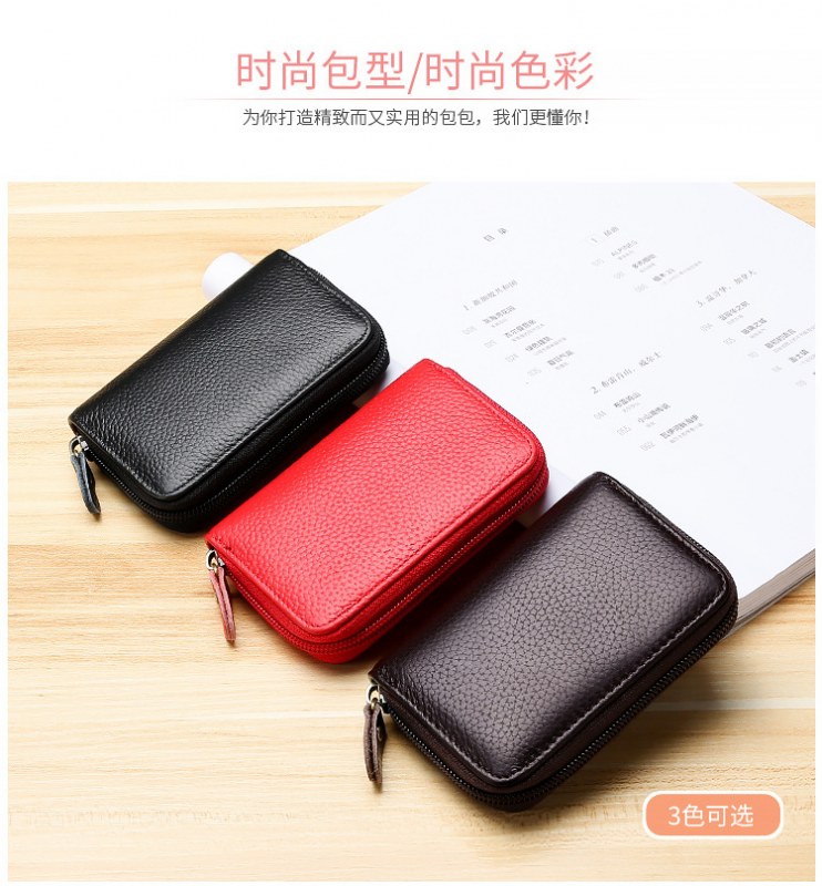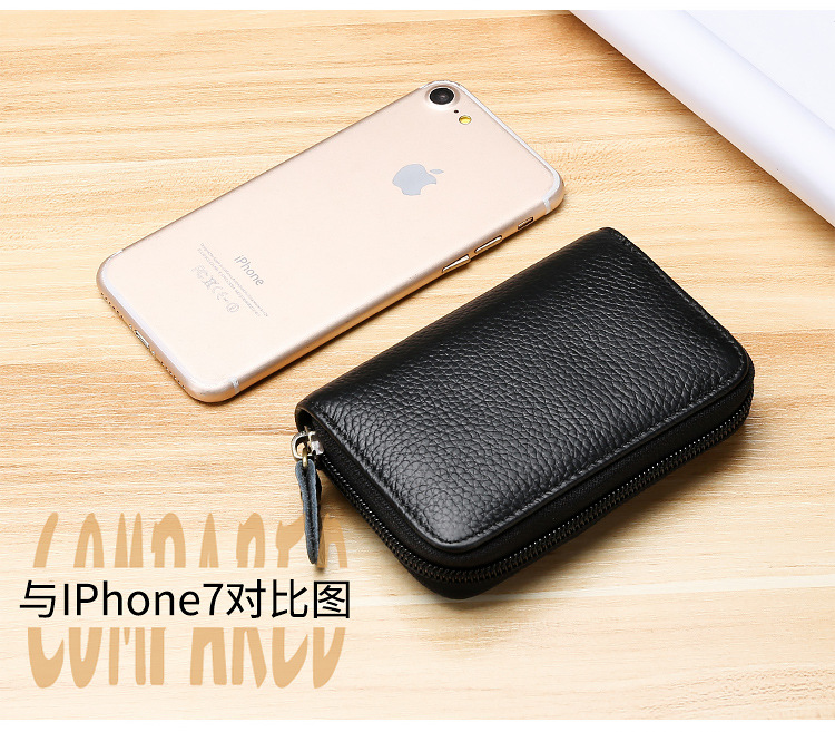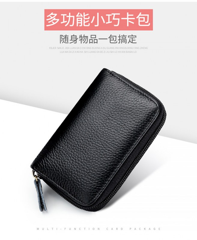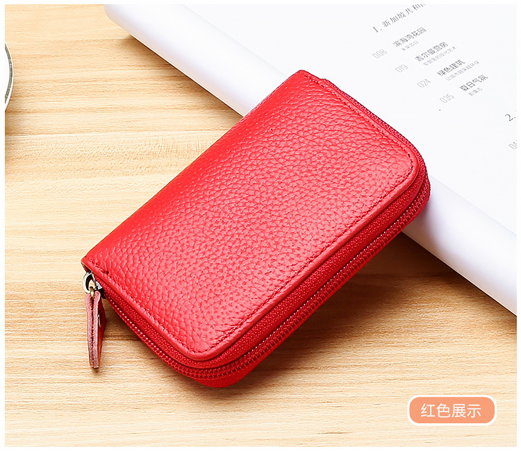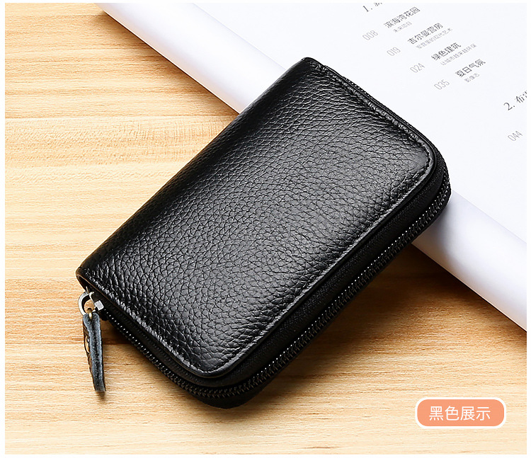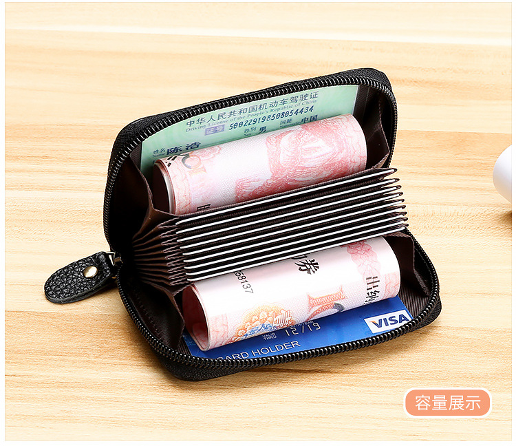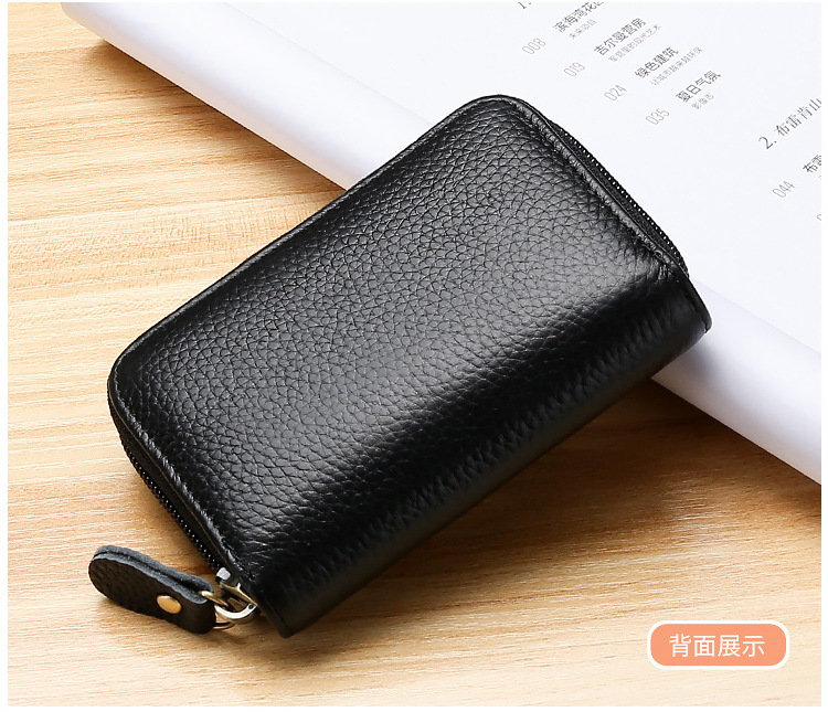 • ライチ柄第一層牛革カードホルダー新しい抗RFIDスキャンクレジットカードホルダー小銭入れ