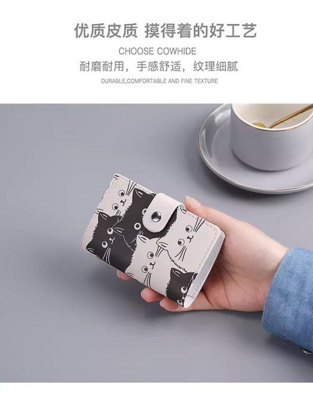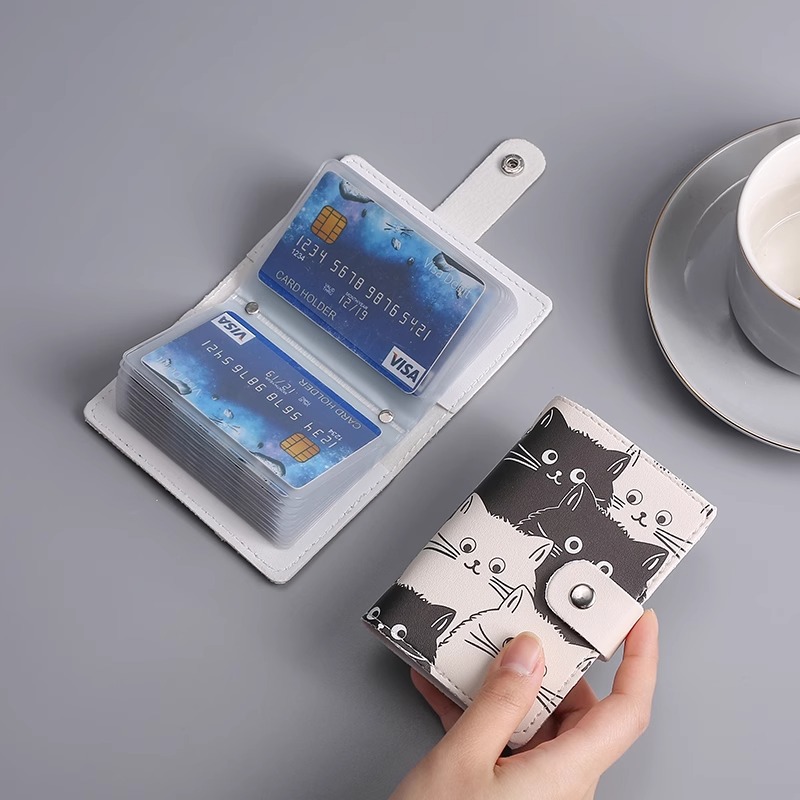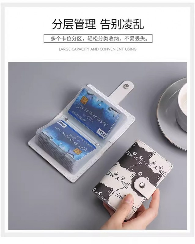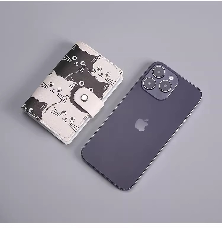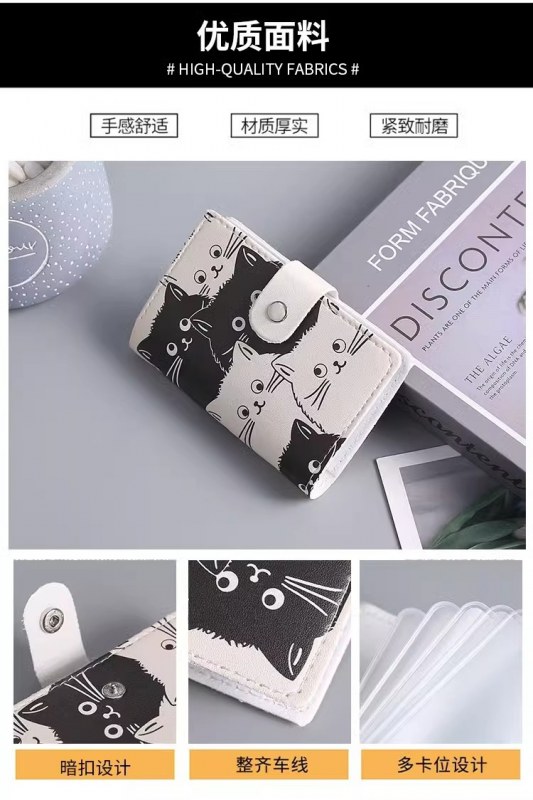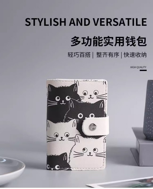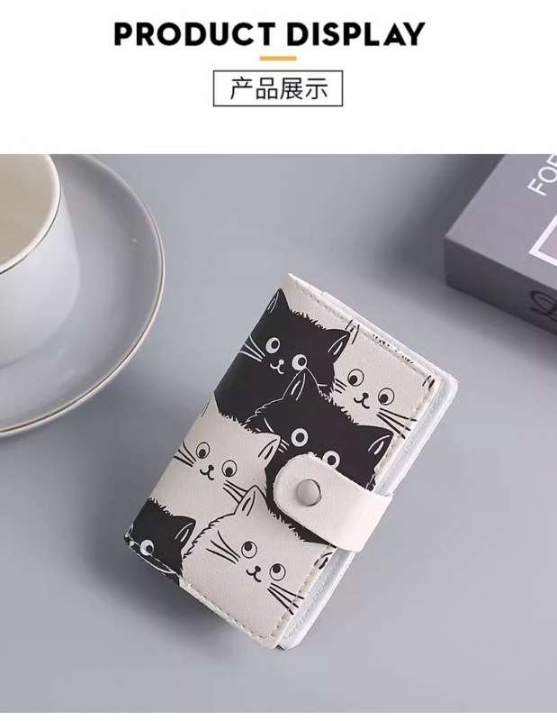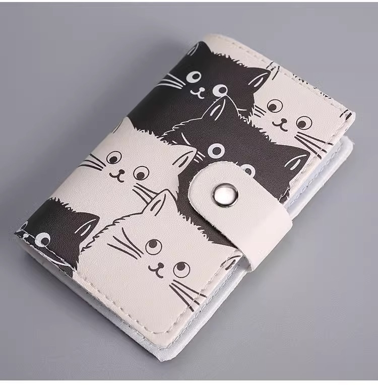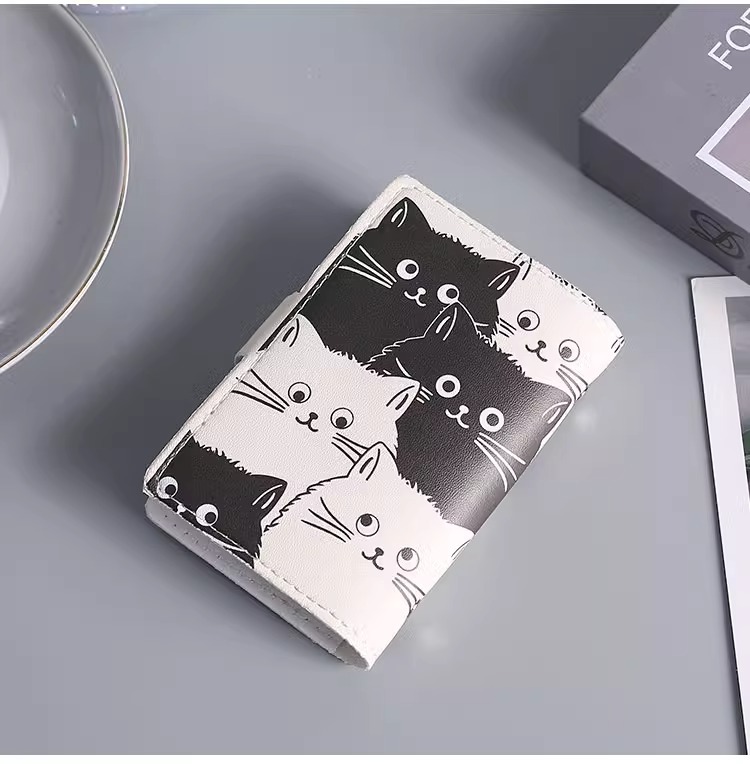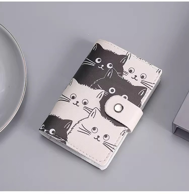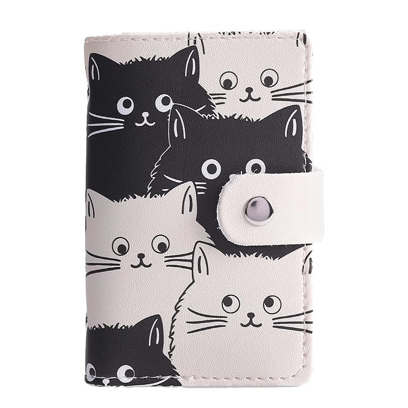 • 黒と白の猫かわいい漫画アニメーションカードホルダー女性ミニ超薄型コンパクト大容量カードスロット学生抗消磁カード