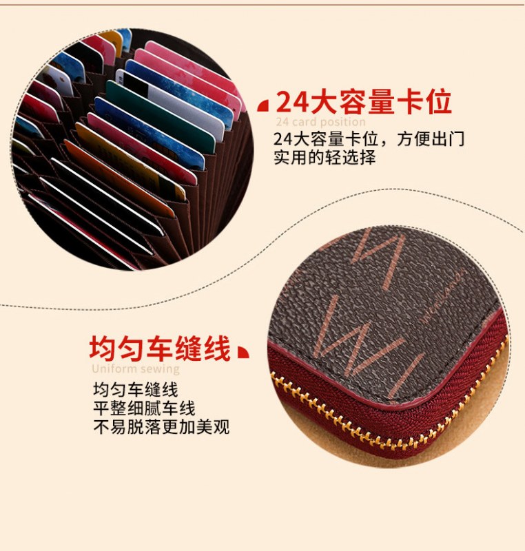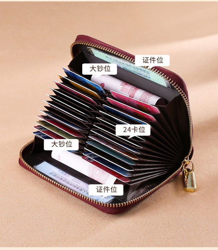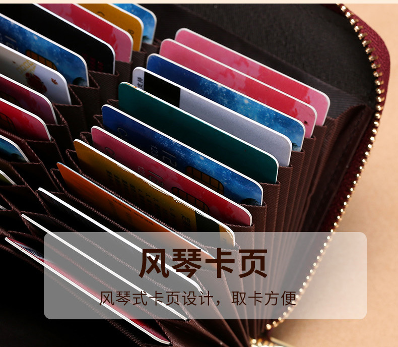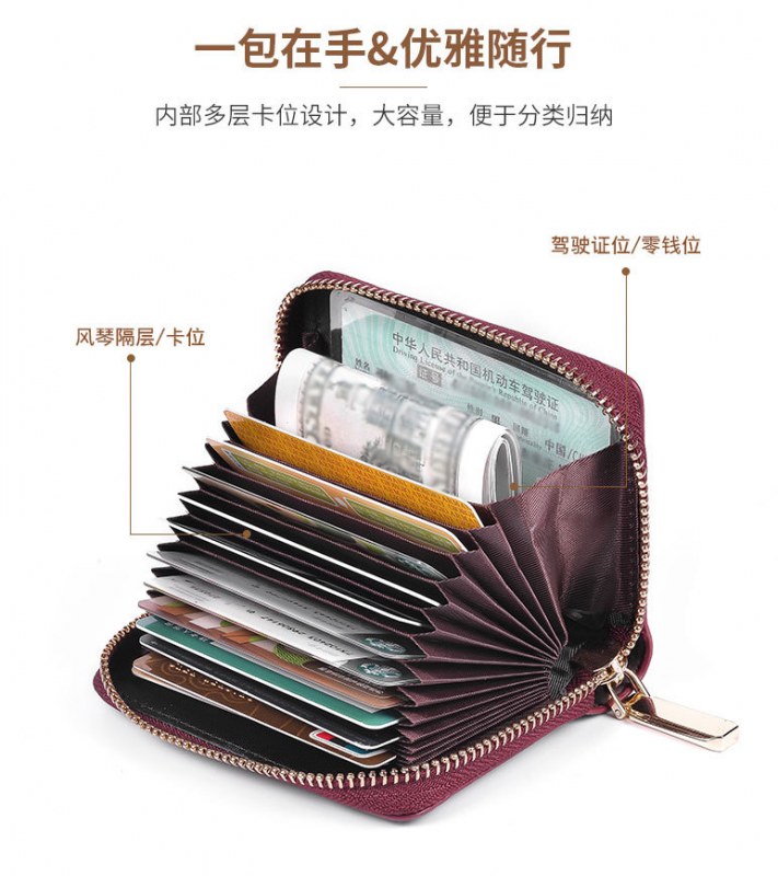 • 消磁極薄ポータブル大容量アコーディオンカードホルダー運転免許証名刺ホルダー手持ちジッパー小銭入れカードホルダー