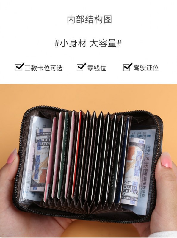 • 新しいジッパーカードホルダーニッチ女性の運転免許証カードホルダーマルチカードスロット大容量小さなバッグミニ薄型小銭入れ