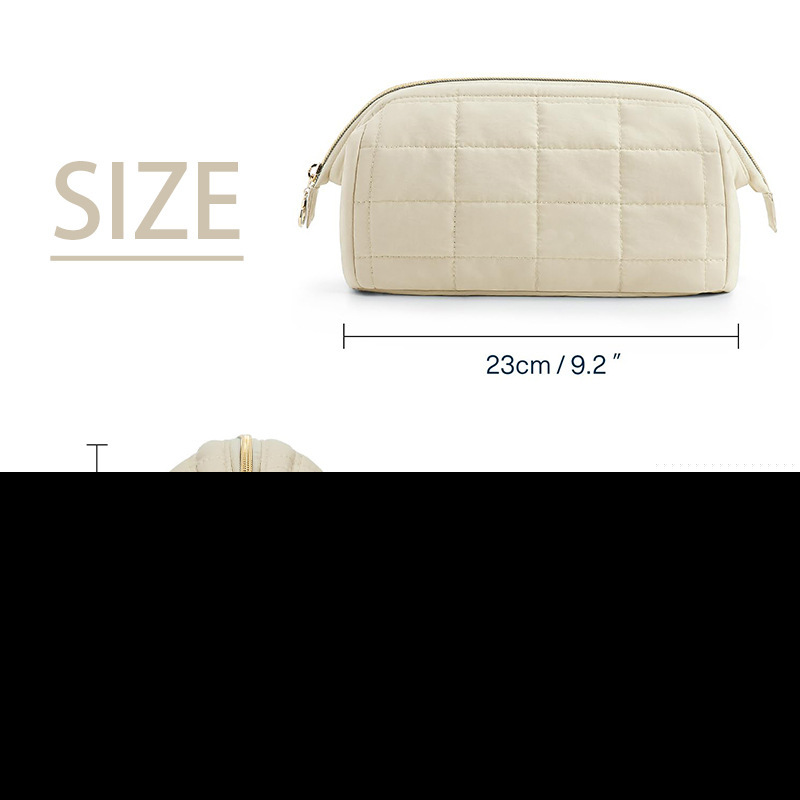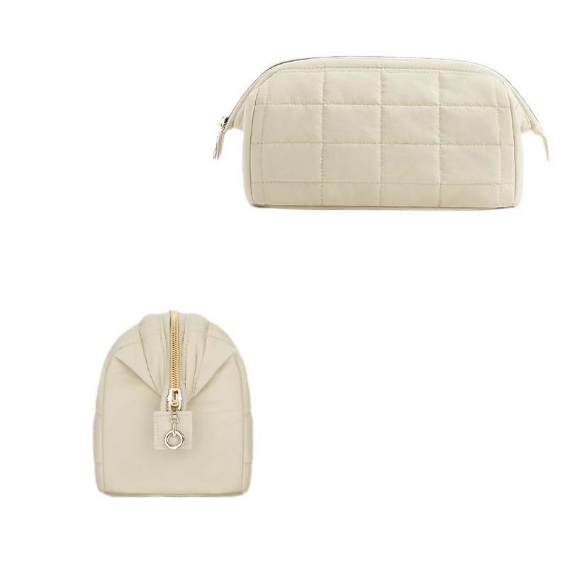 • 人気のラインステッチのダウンとシルクコットンの化粧品バッグ、ポータブル旅行防水トイレタリー収納大容量クラウドバッグ