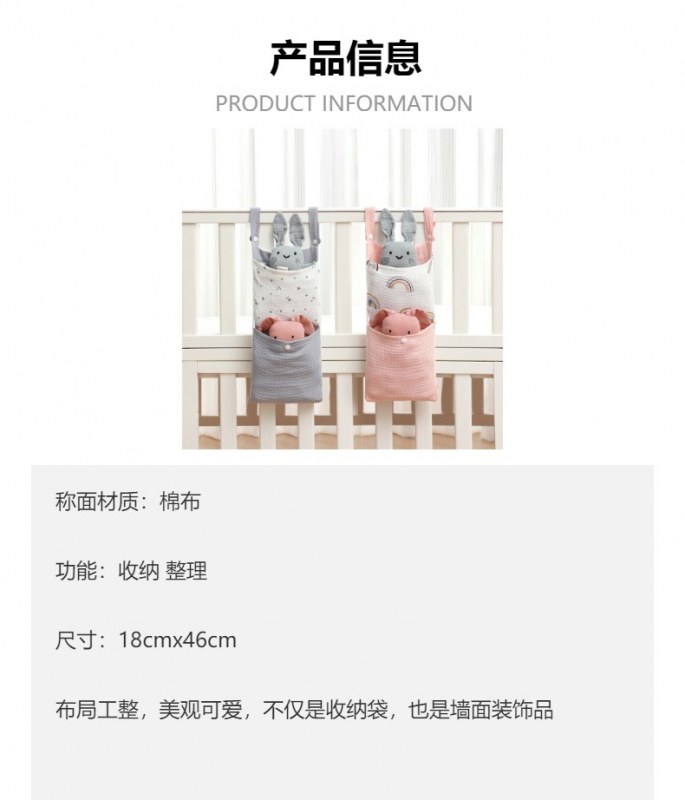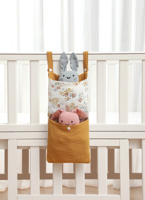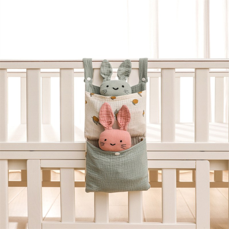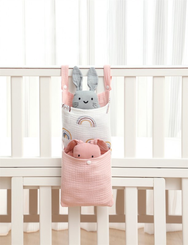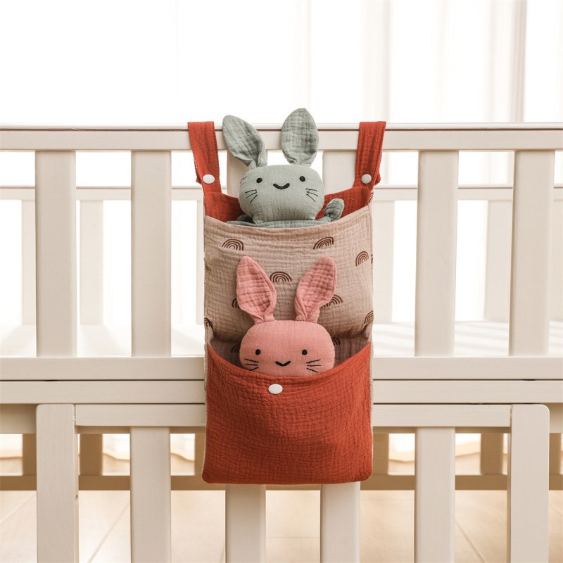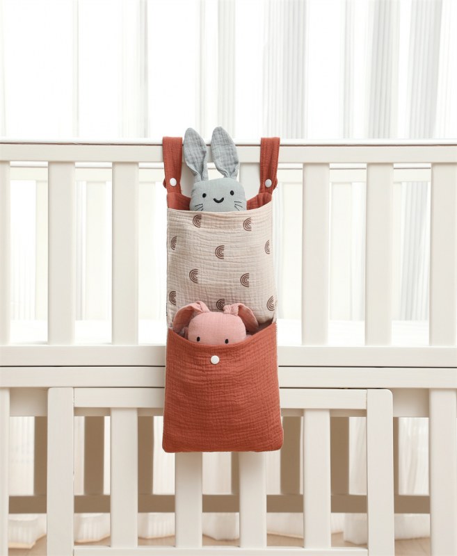 • ベビーベッドモスリンコットン収納袋おむつ収納袋ベッドサイド収納袋多機能ベビーカーハンギングバッグ収納