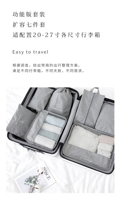 • トラベル収納バッグ7点セット 北欧風オックスフォード布 シンプル衣類仕分けバッグ